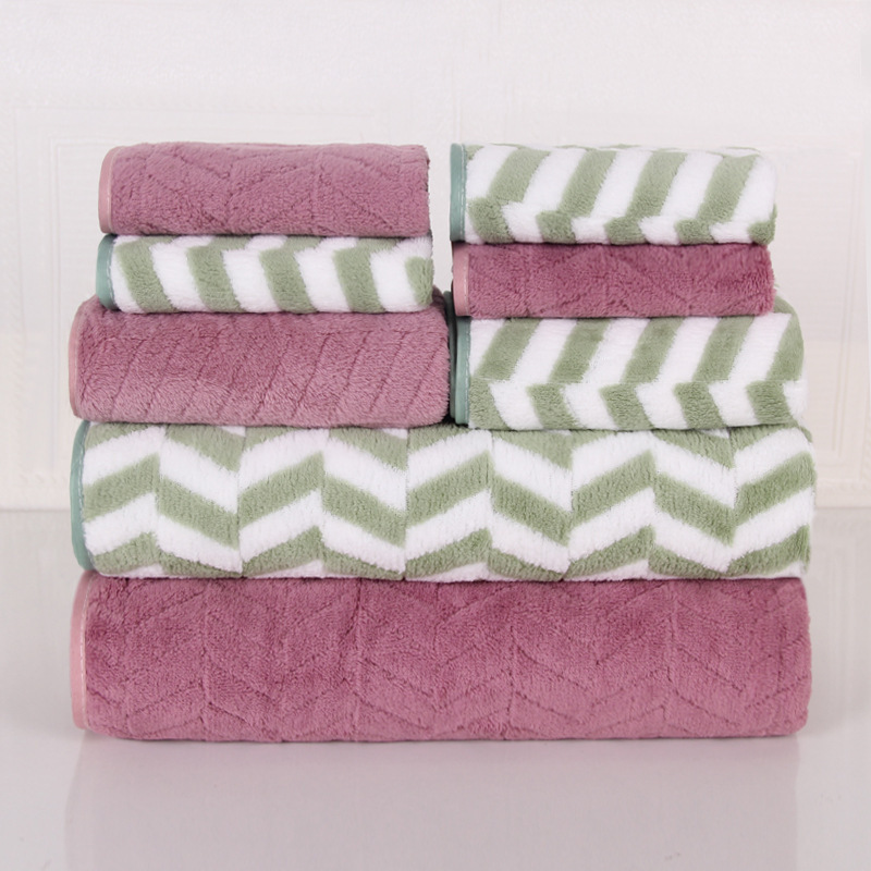 국경 간 도매 일반 밀 타월 아마존 산호 벨벳 타월 목욕 타월 세트 두꺼운 흡수성 얼굴 타월
