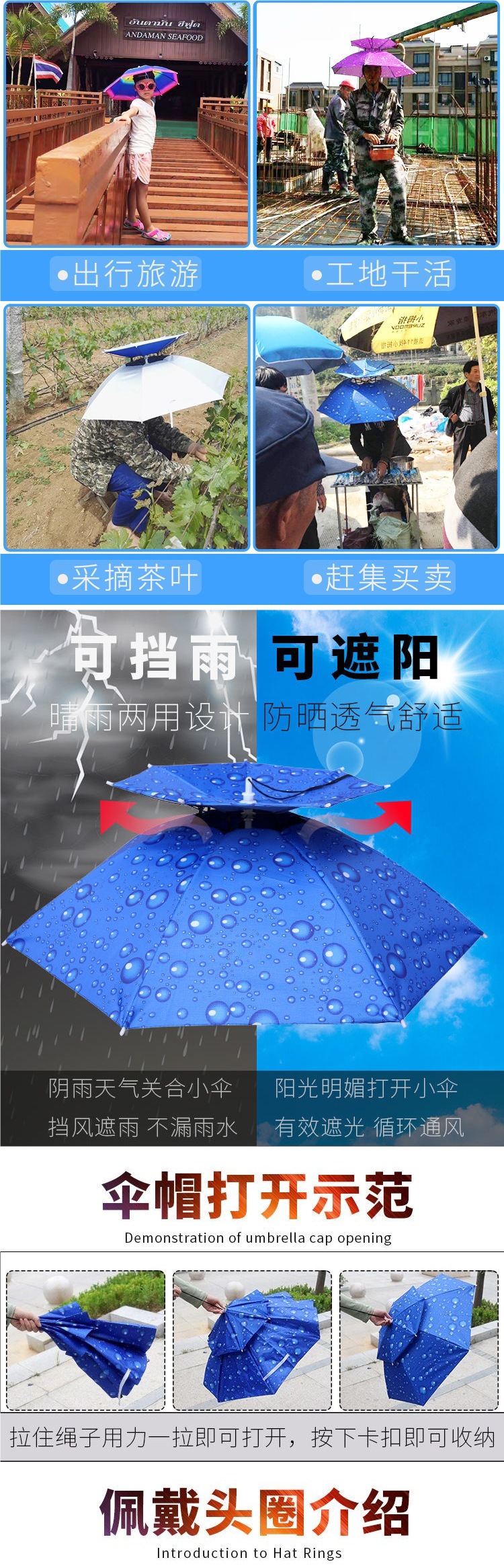 우산모자, 우산모자, 낚시모자, 태양우산, 야외차 따기, 자외선 차단, 모자, 접이식