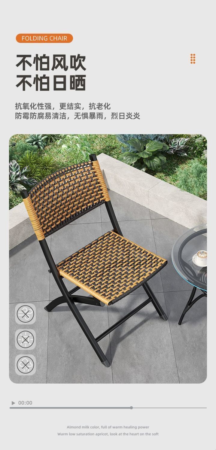 접이식 등나무 의자, 발코니 조합, 작은 테이블, 3피스 커피 테이블, 야외 레저 등받이 안락 의자, 야외 안뜰 의자스토어 가기