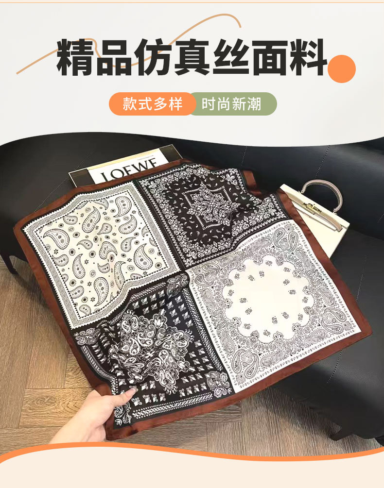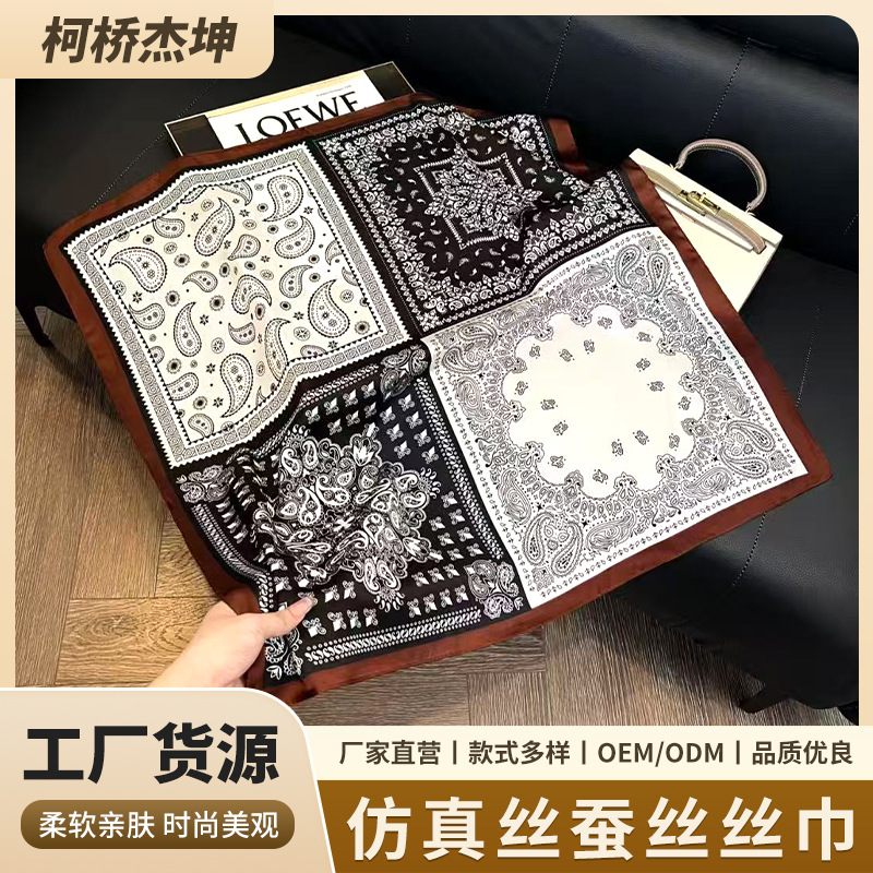 새로운 모조 실크 헤링본 캐슈 실크 스카프 컬러 블록 스퀘어 스카프 예술적 복고풍 작은 스퀘어 스카프 장식 스카프