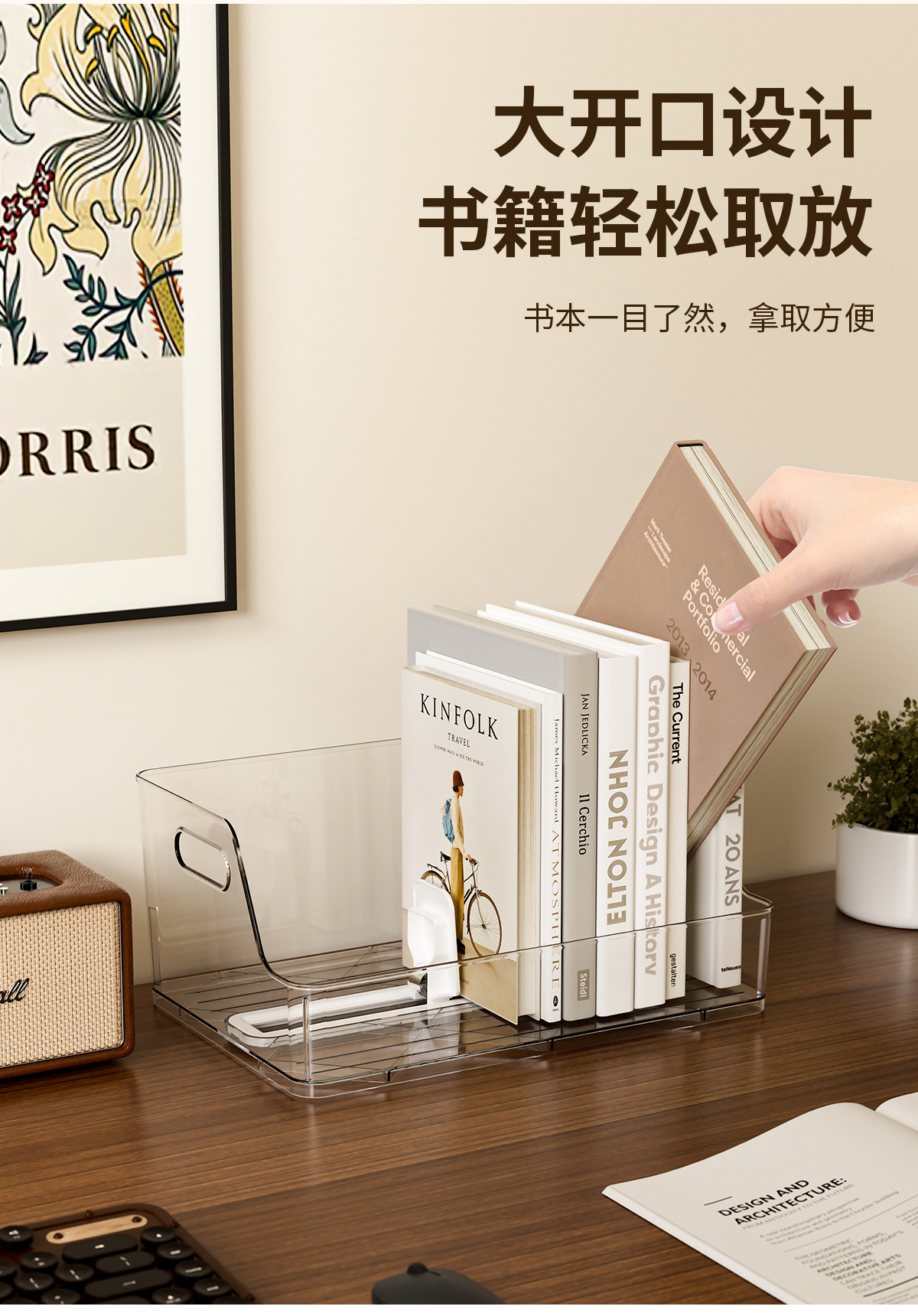 데스크탑 북엔드 수납함, 투명책, 흘림 방지 수납물품, 학생용 책, 책상 수납선반 정리
