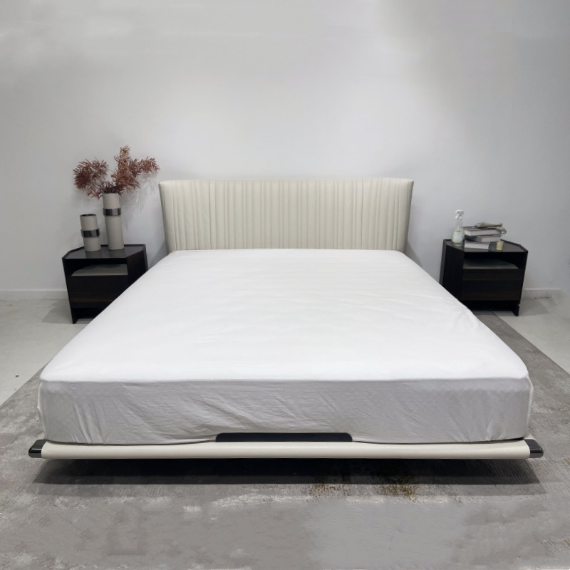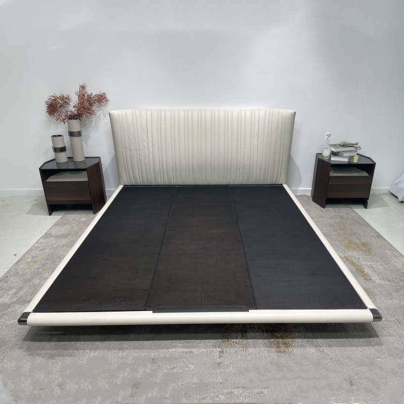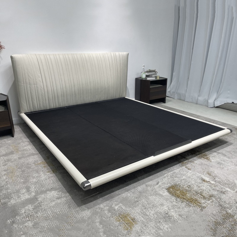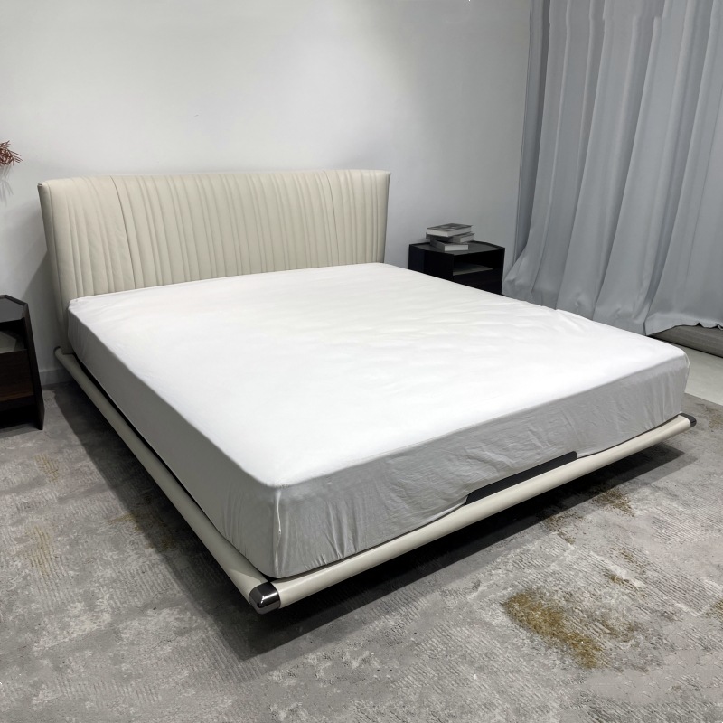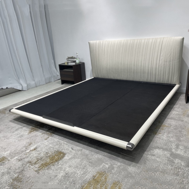 디자이너 더블 쉘 침대 이탈리아 미니멀리스트 가죽 침대 하드웨어 철 프레임 마스터 침실 현대적인 미니멀리스트 요정 침대스토어 가기