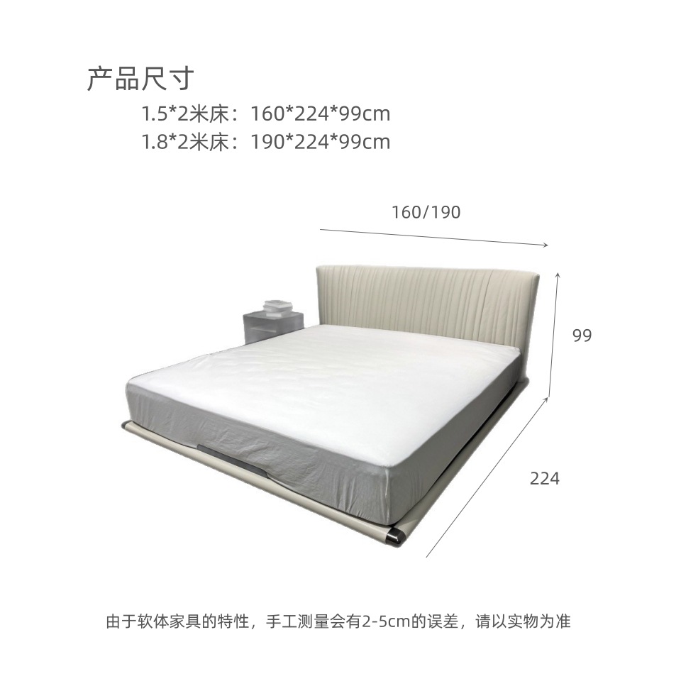 디자이너 더블 쉘 침대 이탈리아 미니멀리스트 가죽 침대 하드웨어 철 프레임 마스터 침실 현대적인 미니멀리스트 요정 침대