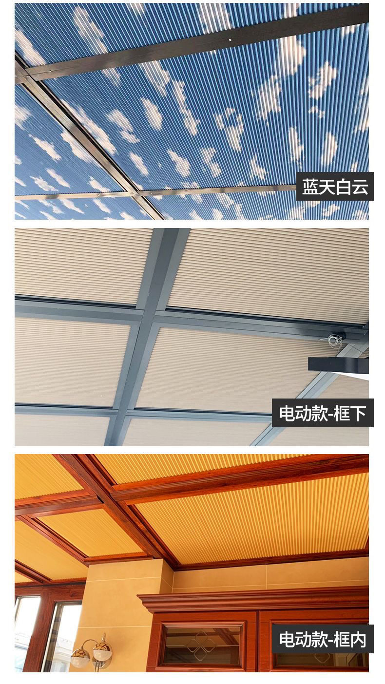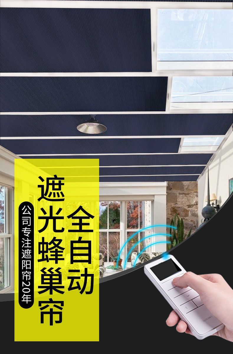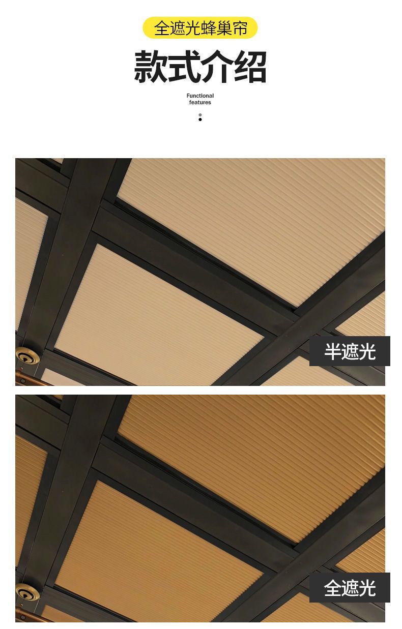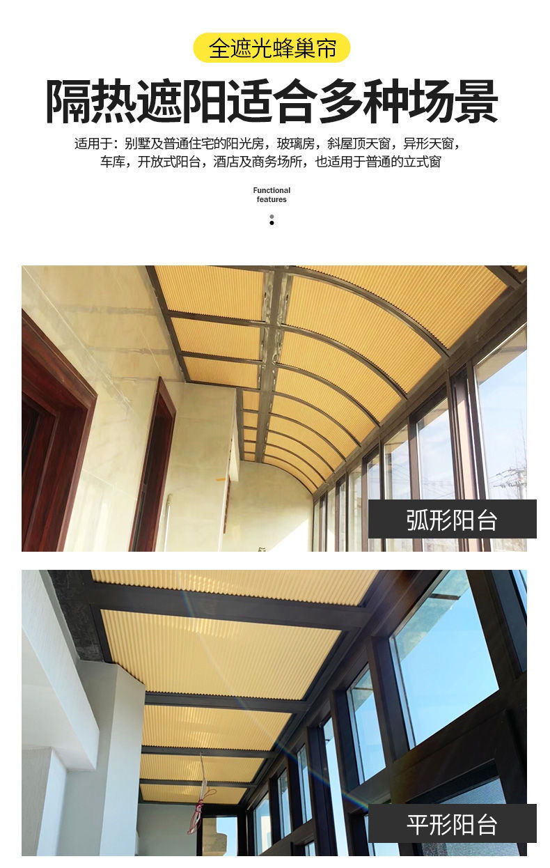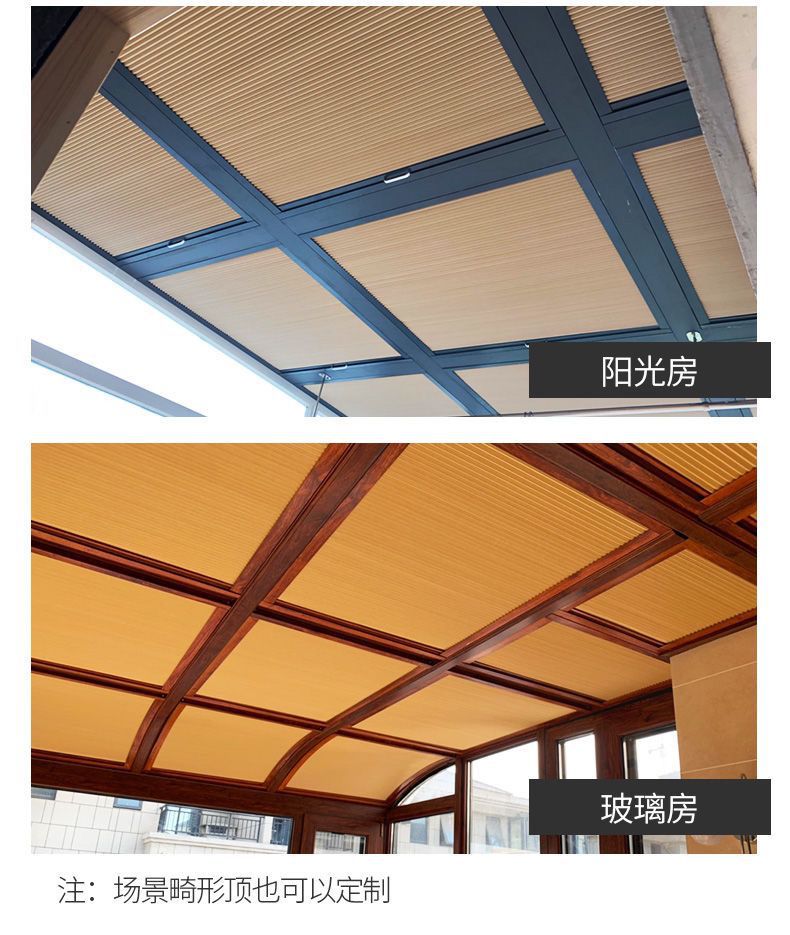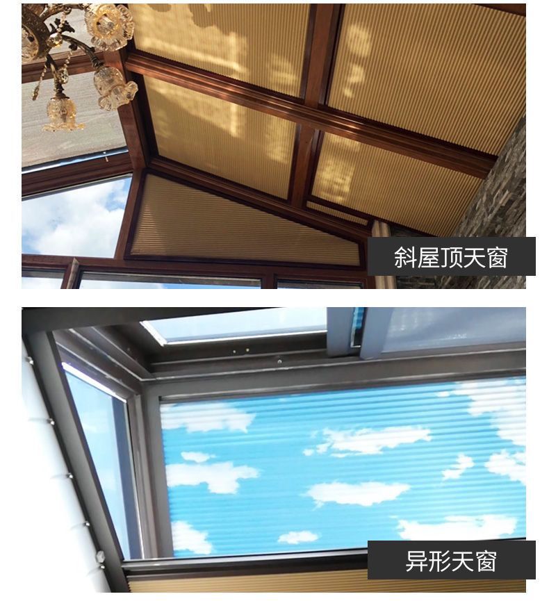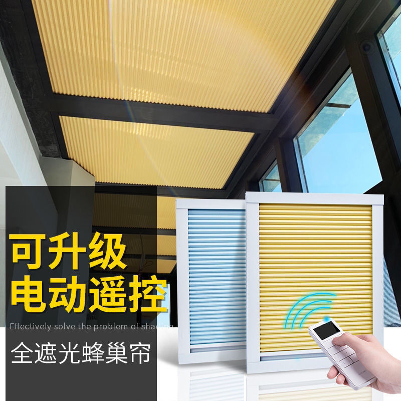 전동 수동 벌집형 차양 천은 선룸 유리 지붕창, 천창 차광 및 단열 차양에 사용됩니다.