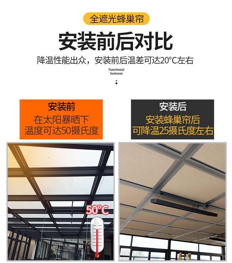 전동 수동 벌집형 차양 천은 선룸 유리 지붕창, 천창 차광 및 단열 차양에 사용됩니다.스토어 가기