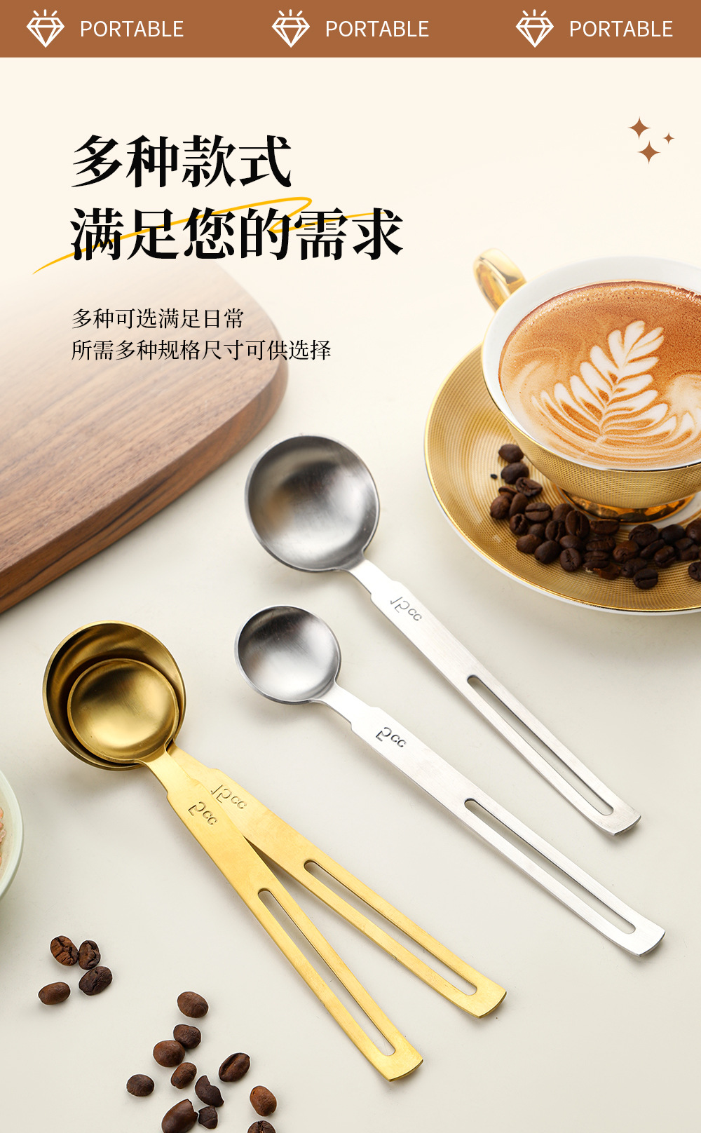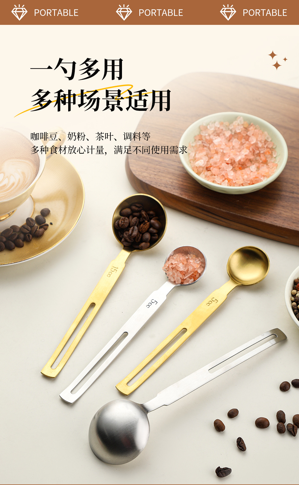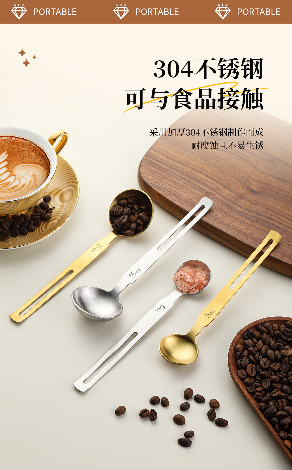걸이형 304 스테인레스 스틸 계량 스푼 커피 콩 우유 파우더 스푼 주방 계량 스푼 베이킹 용품 조미료 정량 스푼스토어 가기