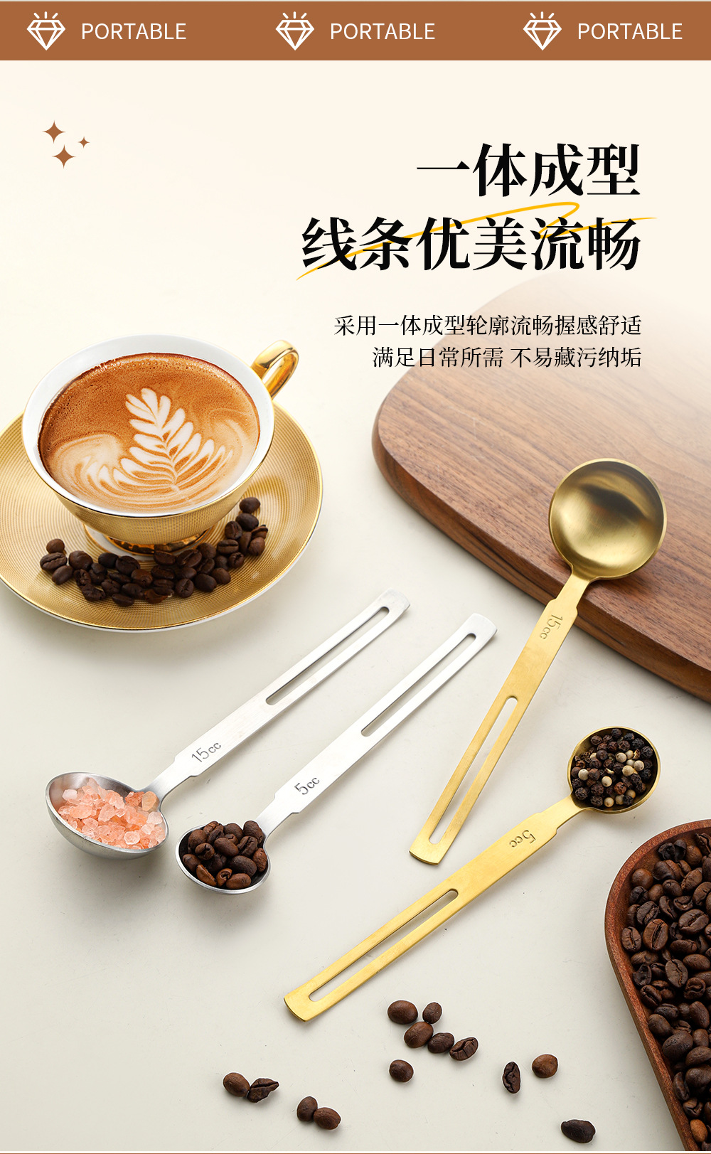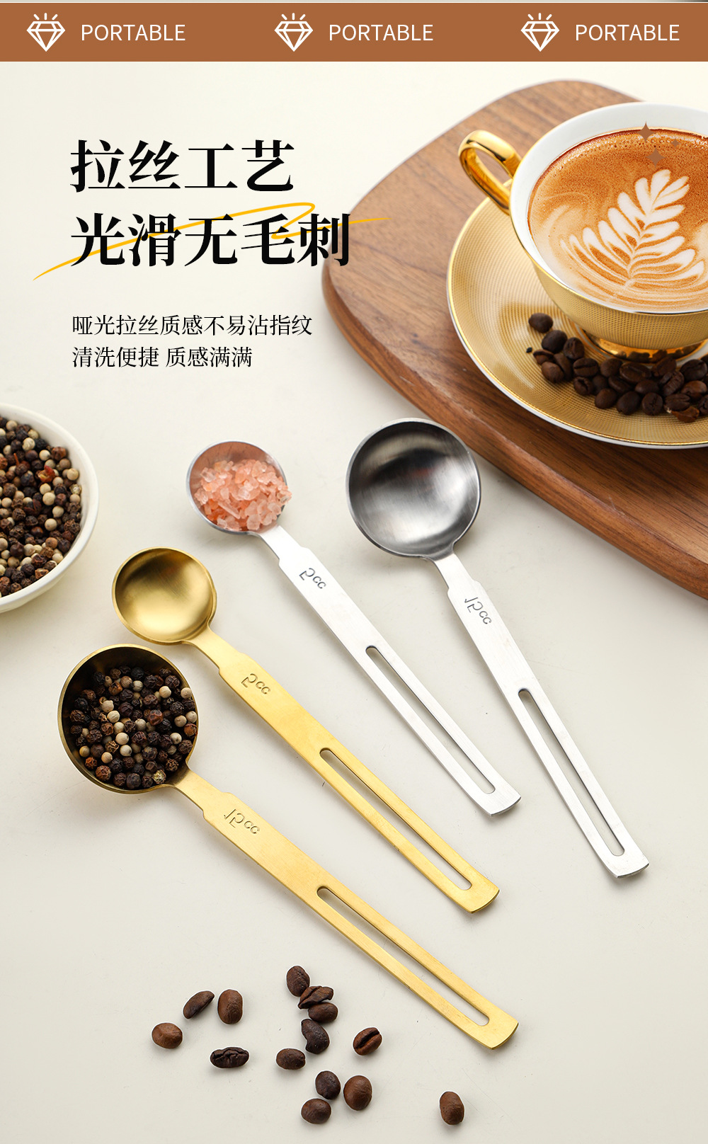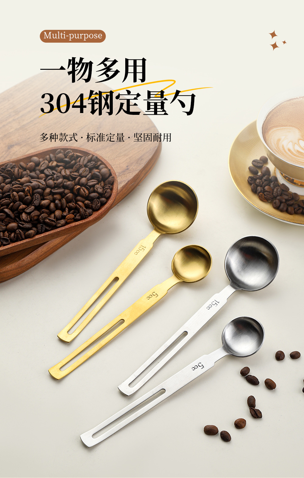 걸이형 304 스테인레스 스틸 계량 스푼 커피 콩 우유 파우더 스푼 주방 계량 스푼 베이킹 용품 조미료 정량 스푼