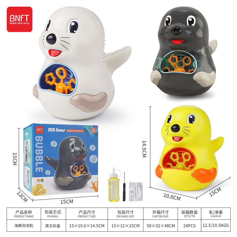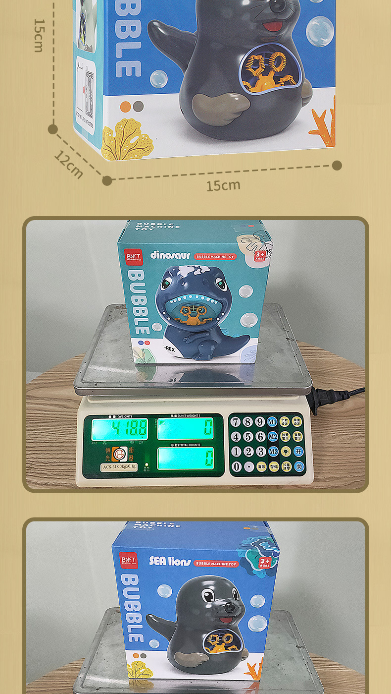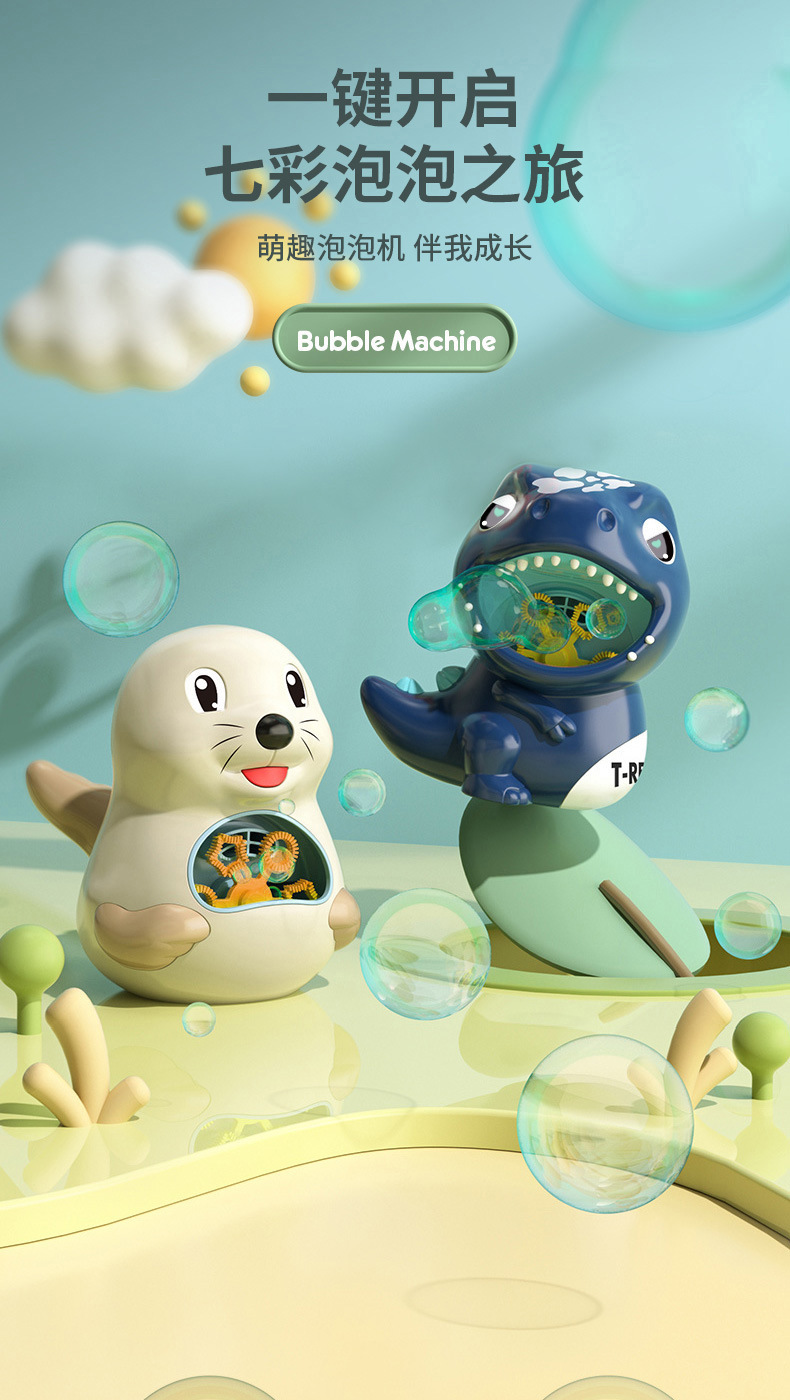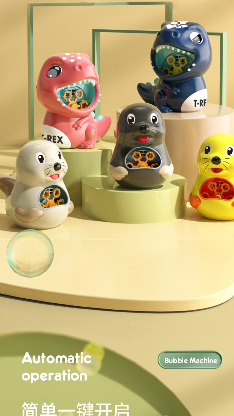국경 간 새로운 전기 소리와 빛 귀여운 동물 공룡 바다 사자 버블 머신 자동 버블 부는 어린이 장난감 도매스토어 가기