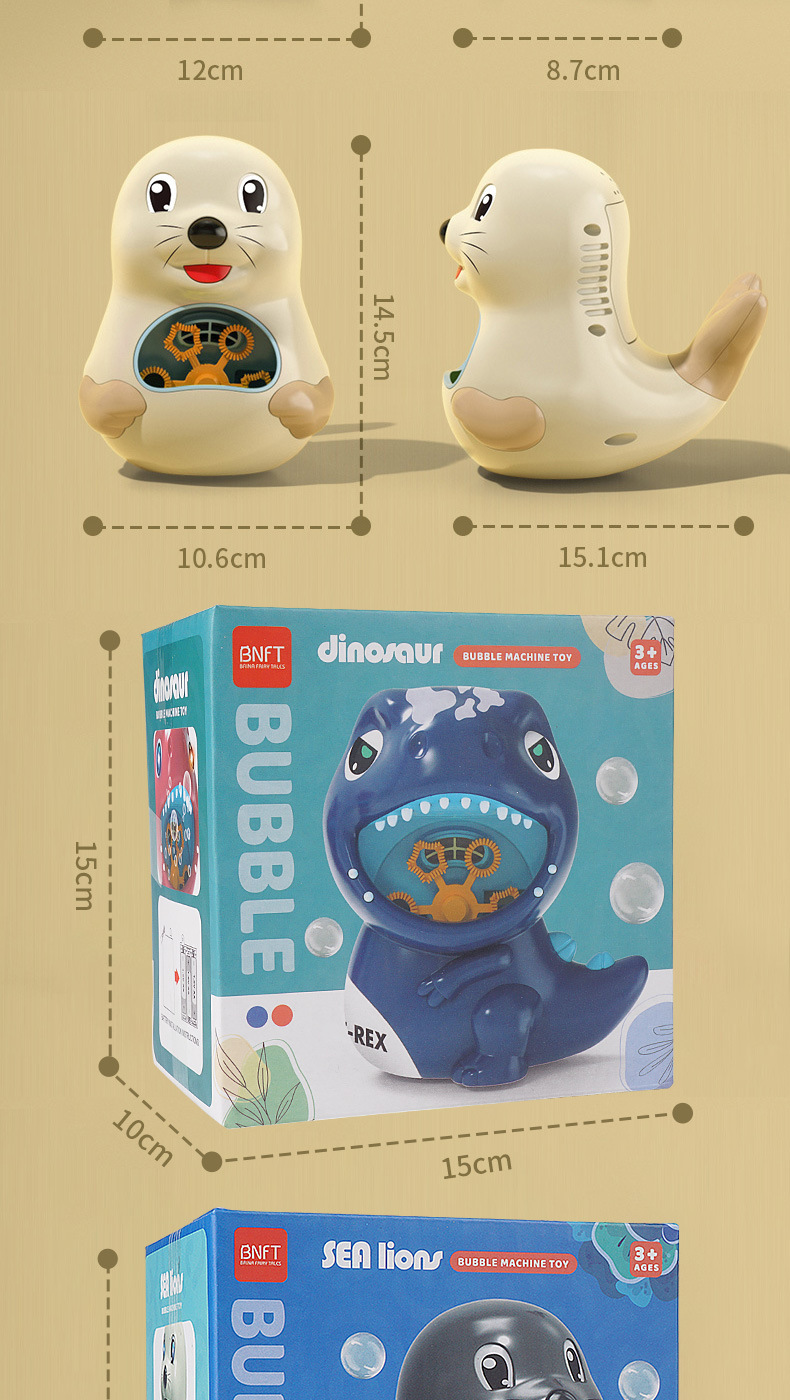 국경 간 새로운 전기 소리와 빛 귀여운 동물 공룡 바다 사자 버블 머신 자동 버블 부는 어린이 장난감 도매