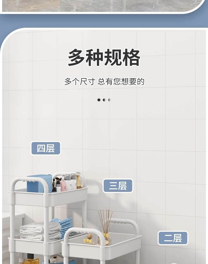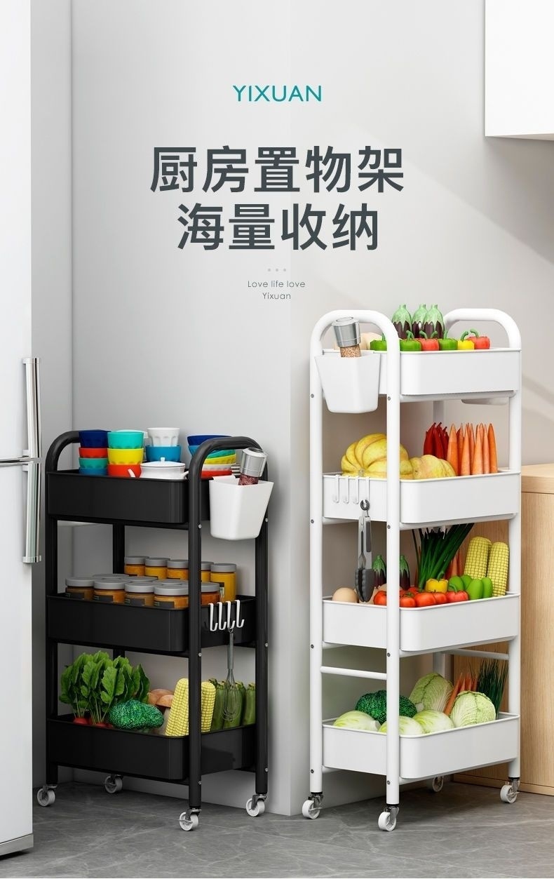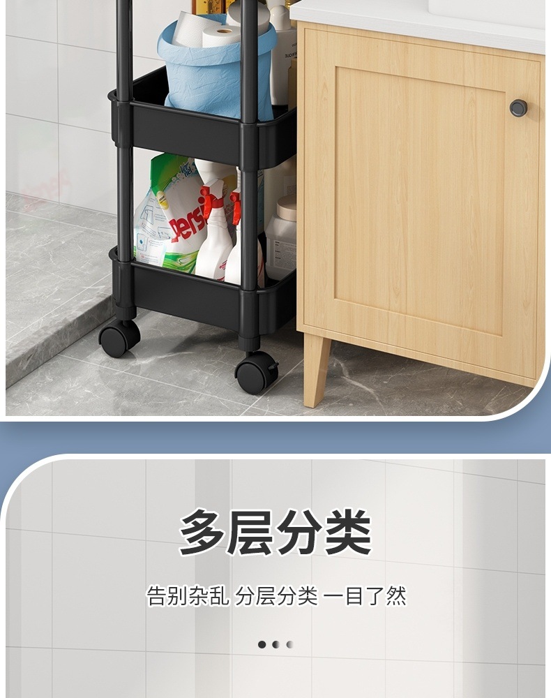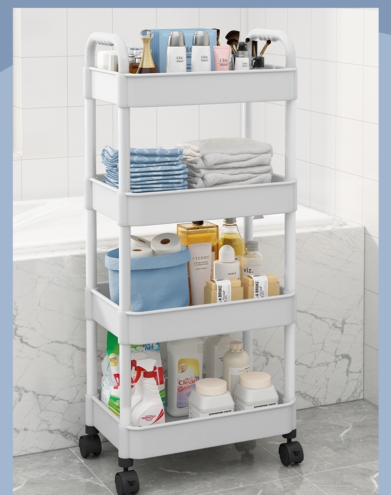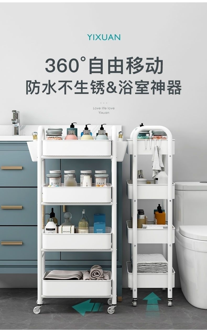 트롤리 보관 랙 바닥에서 천장까지 주방 욕실 모바일 스낵 욕실 다층 침실 머리맡 보관 랙