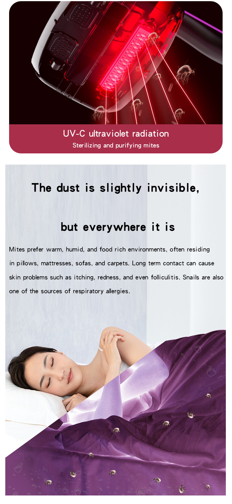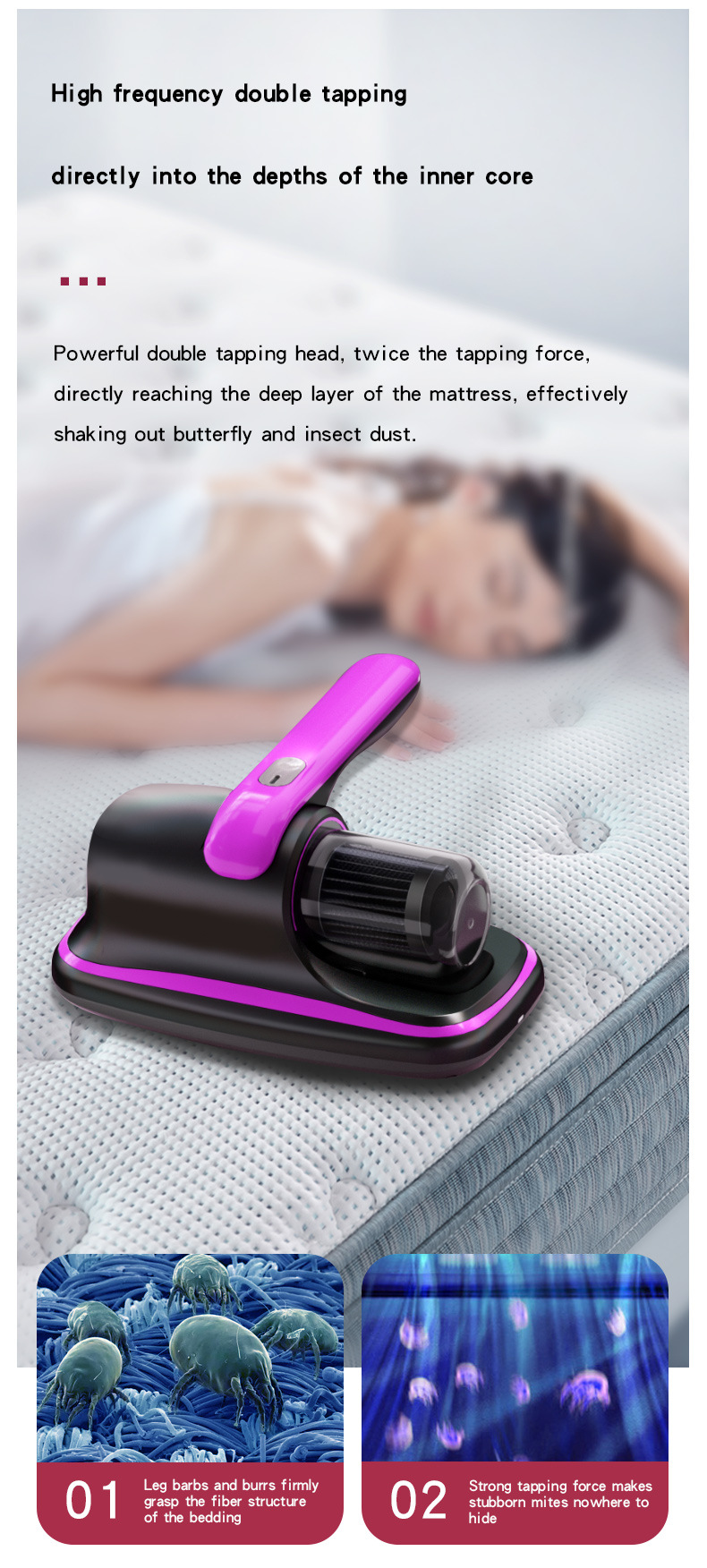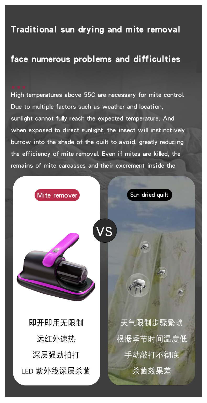 [국경 간] 진드기 제거제 무선 충전 휴대용 진드기 제거제 대형 흡입 기숙사 침대 살균 및 진드기 제거 진공 청소기