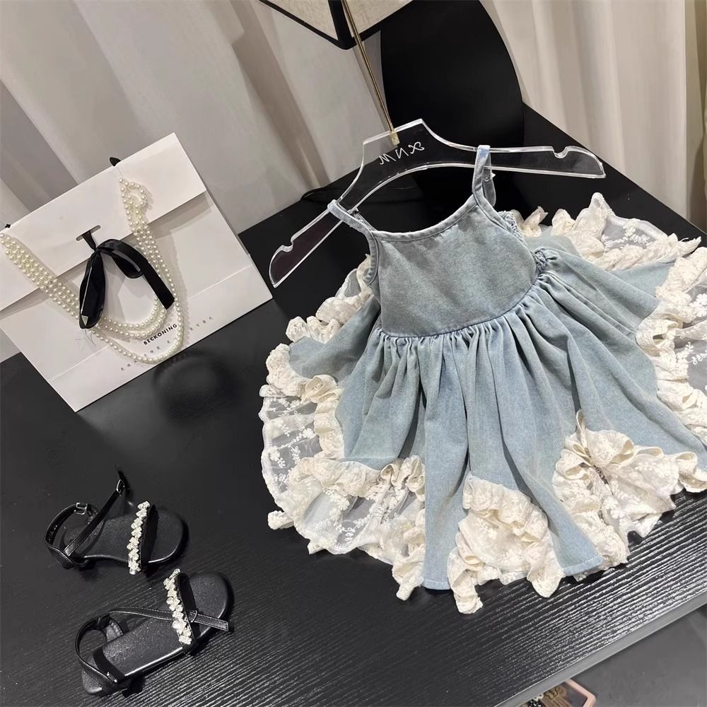 여자 2025 여름 새로운 스타일 복고풍 달콤한 패션 귀여운 다목적 데님 레이스 스플 라이스 공주 드레스스토어 가기