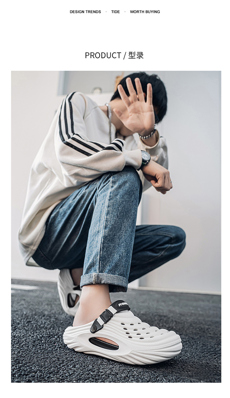 Jiangxi Dachang Croc Shoes 남성 여름 신작 Baotou 투웨어 미끄럼 방지 비치 슈즈 크로스보더 캐주얼 한국어 버전 소프트 솔
