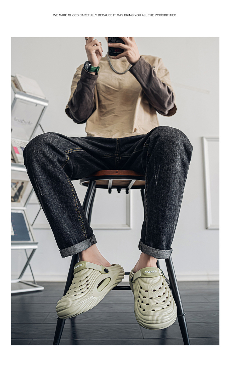 Jiangxi Dachang Croc Shoes 남성 여름 신작 Baotou 투웨어 미끄럼 방지 비치 슈즈 크로스보더 캐주얼 한국어 버전 소프트 솔스토어 가기