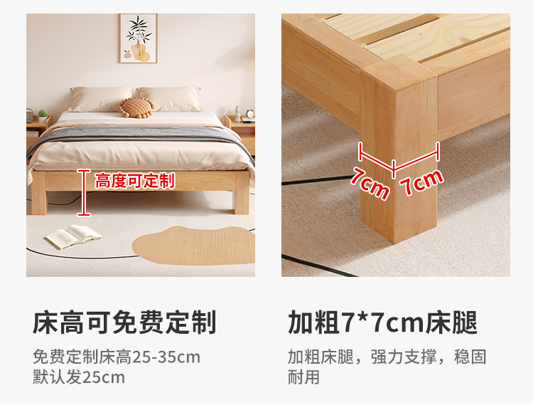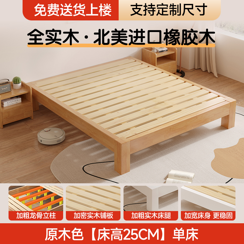 • [높이 25CM] 싱글 침대 원목 색상 (설치 포함)