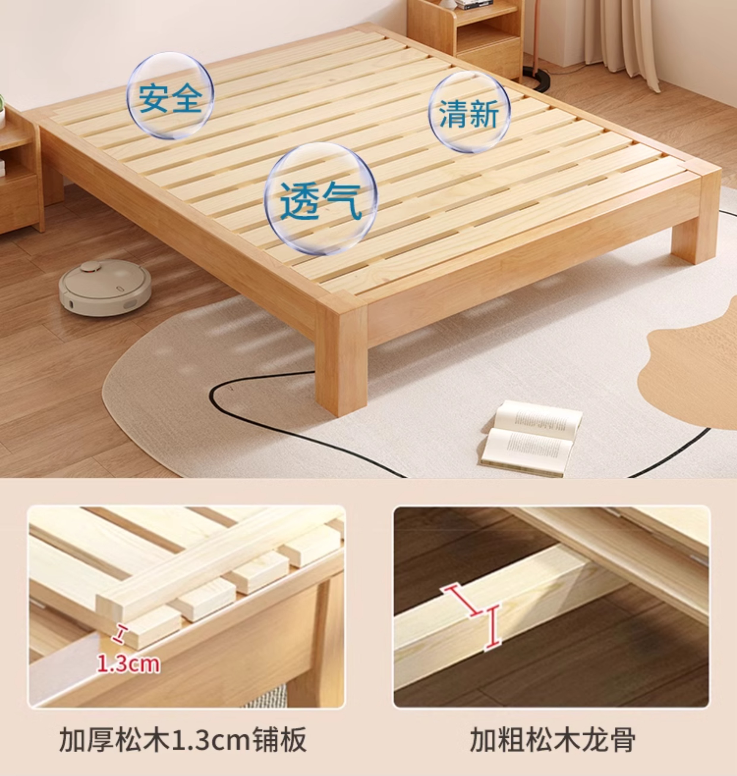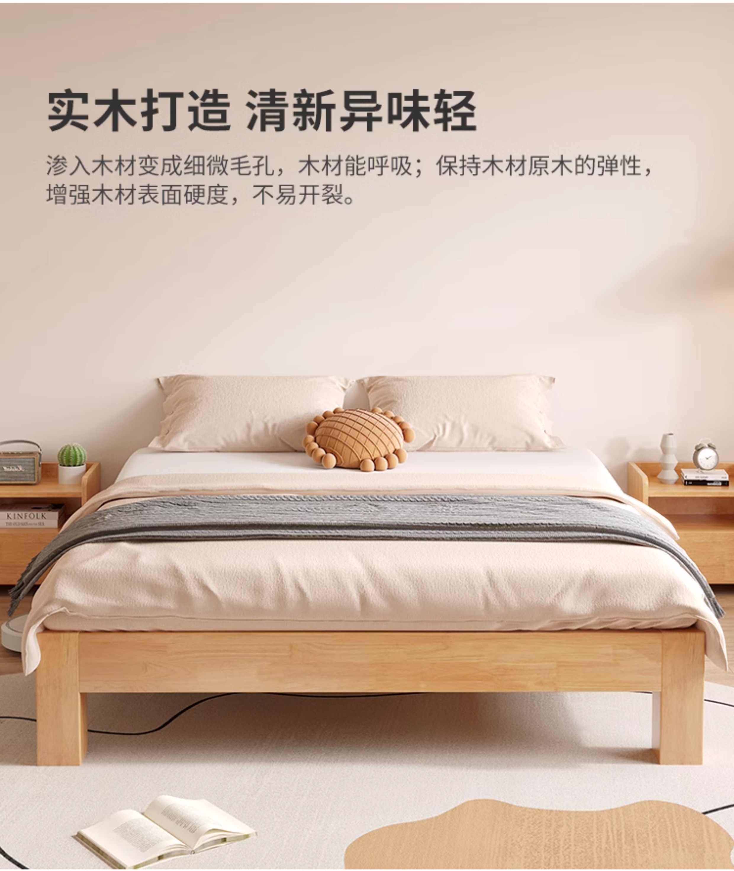 침대가 없는 원목 침대, 모던하고 심플한 다다미 침실, 가정용 더블 침대, 소형 아파트, 코코아 맞춤형 프레임 침대스토어 가기
