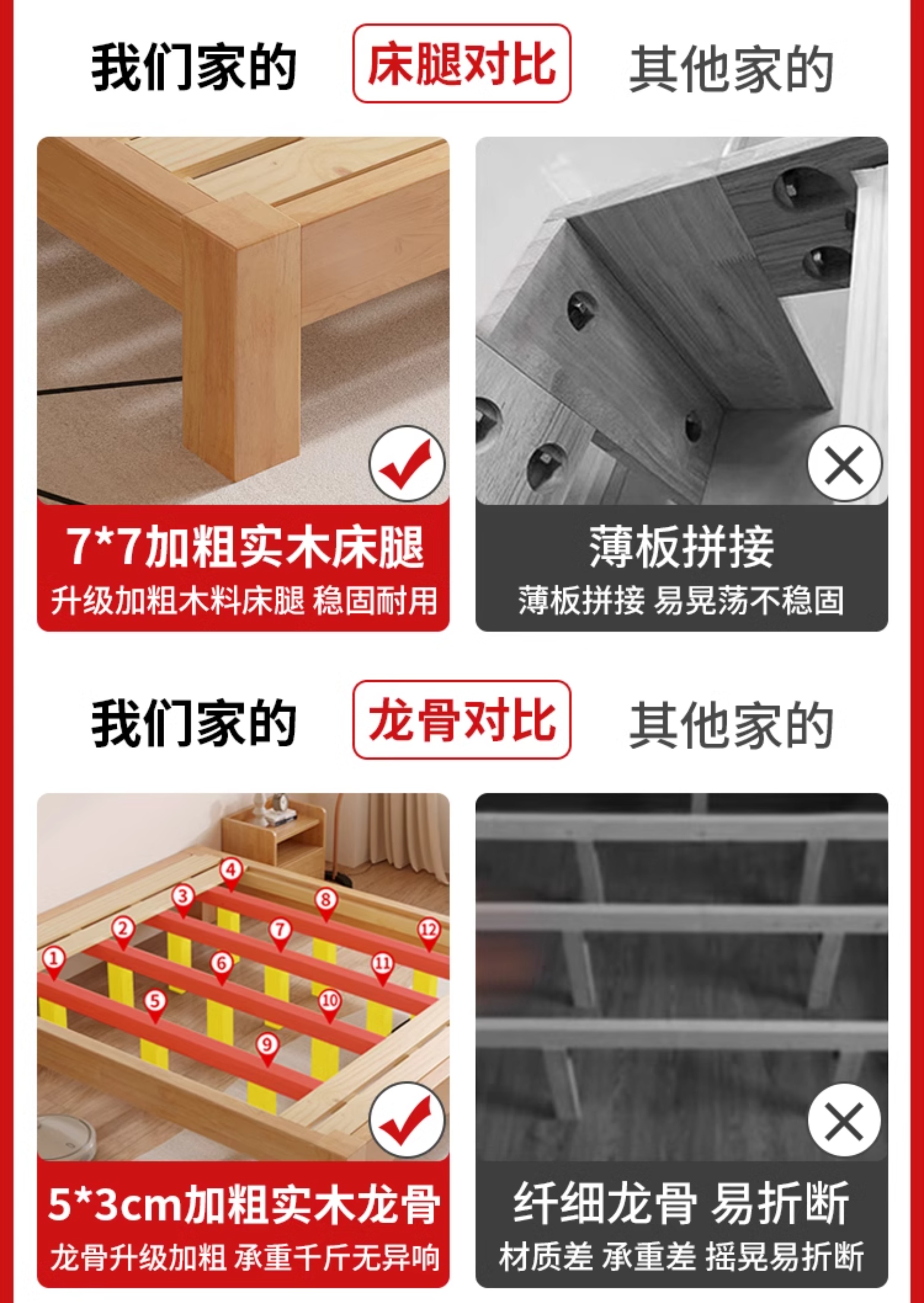 • [높이 50CM] 싱글 침대 우드 컬러 + 20cm 독립 스프링 매트리스(설치 포함)