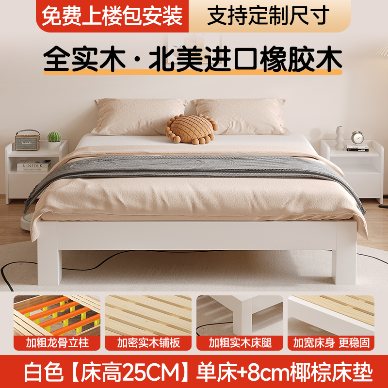 • [높이 25CM] 싱글 침대 화이트 + 8cm 코코넛 야자 매트리스(설치 포함)