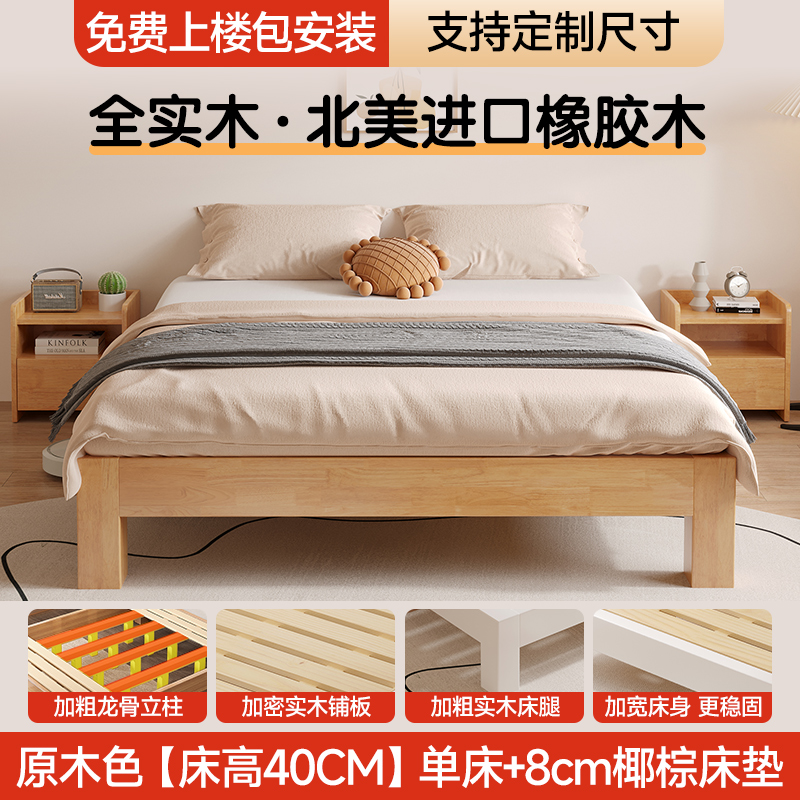 • [높이 40CM] 싱글 침대 우드 컬러 + 8cm 코코넛 야자 매트리스(설치 포함)