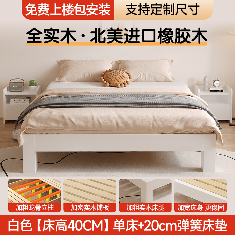 • [높이 40CM] 싱글 침대 화이트 + 20cm 독립 스프링 매트리스 (설치 포함)