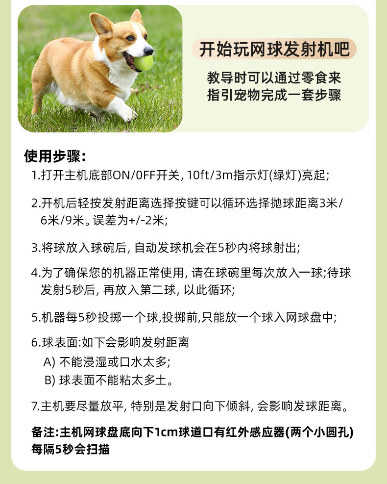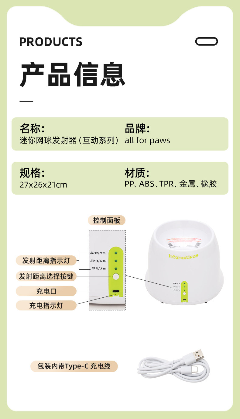 【品名】:/hoopet宠物抛球机绿色/ AFP(All For Paws)电动网球发射机-充电版