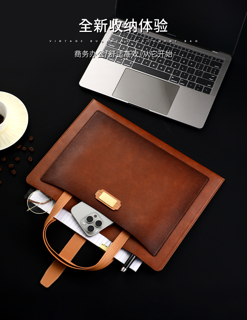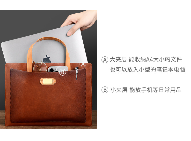 • D1011-[컴퓨터에 넣을 수 있음] 업그레이드된 파일백-브라운(이중수납, 휴대가능)