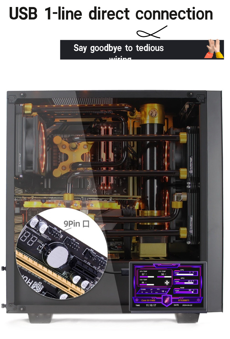 只需一根USB线解决通讯+供电问题,免去显卡占用问题