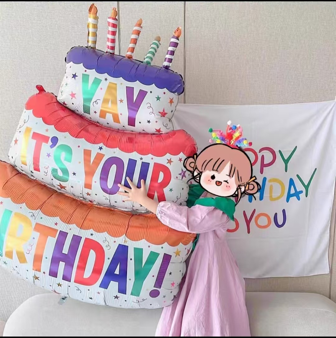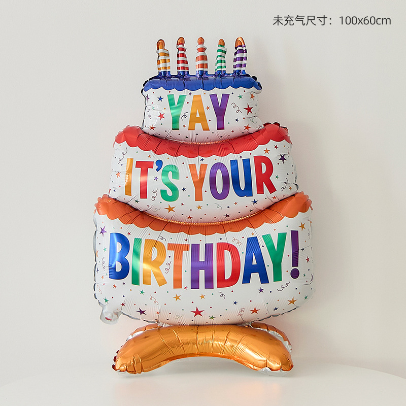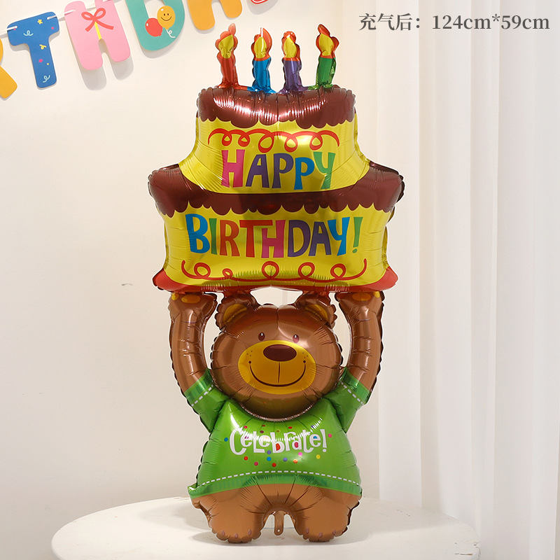 생일 케이크 만화 알루미늄 필름 입체 풍선 장식 소년과 소녀 생일 분위기 소품 사진 레이아웃 용품스토어 가기