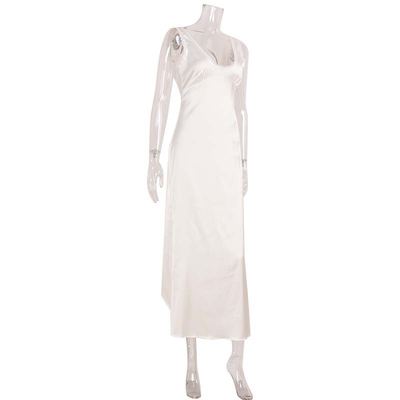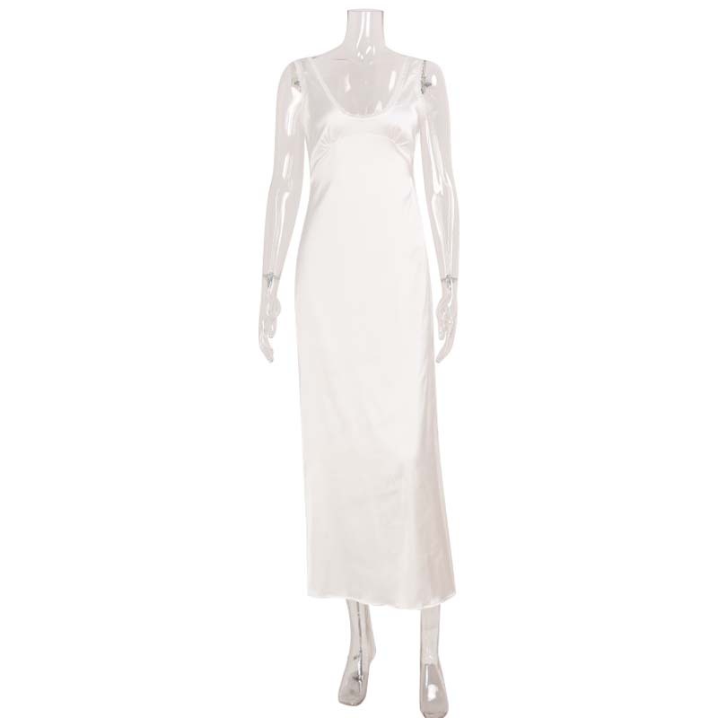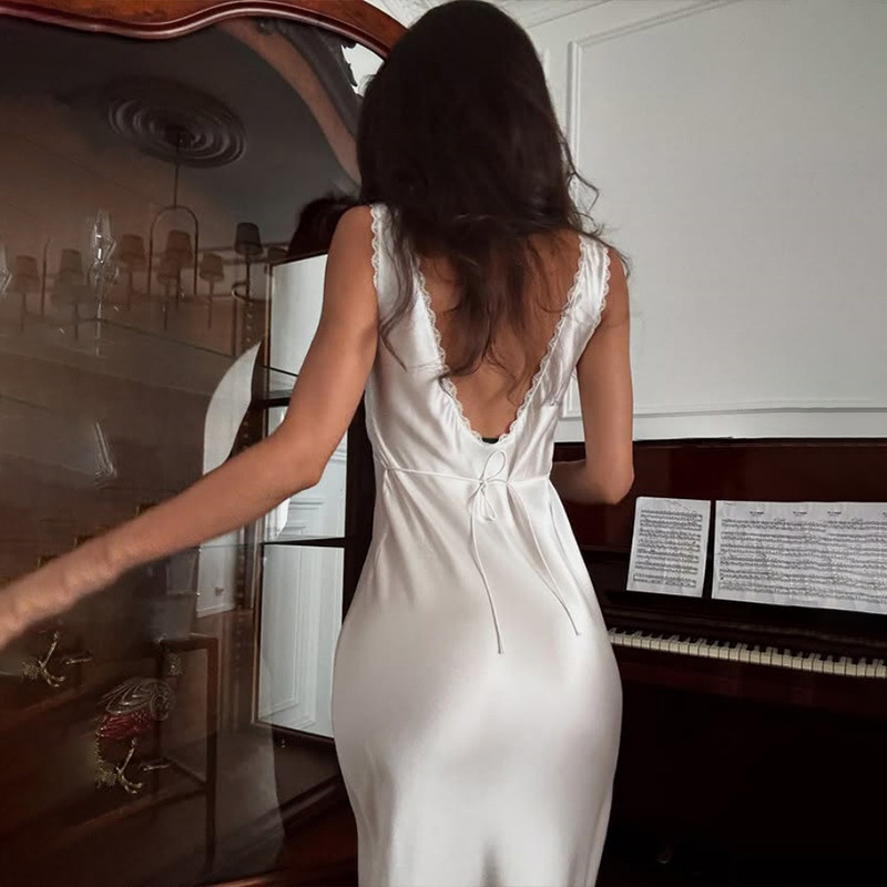 국경을 넘나드는 여름 프렌치 퓨어 소녀 브이넥 백리스 새틴 질감 레이스 민소매 허리 기질 드레스스토어 가기