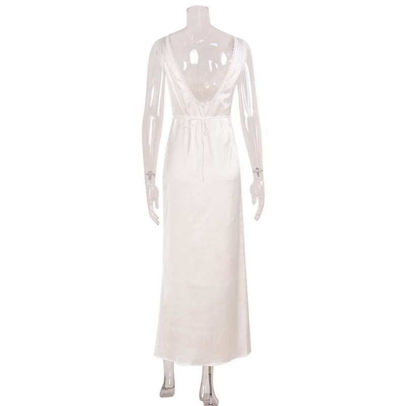 국경을 넘나드는 여름 프렌치 퓨어 소녀 브이넥 백리스 새틴 질감 레이스 민소매 허리 기질 드레스