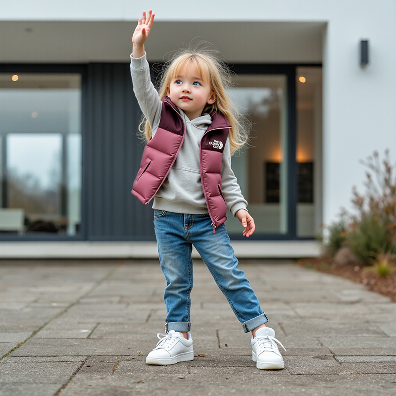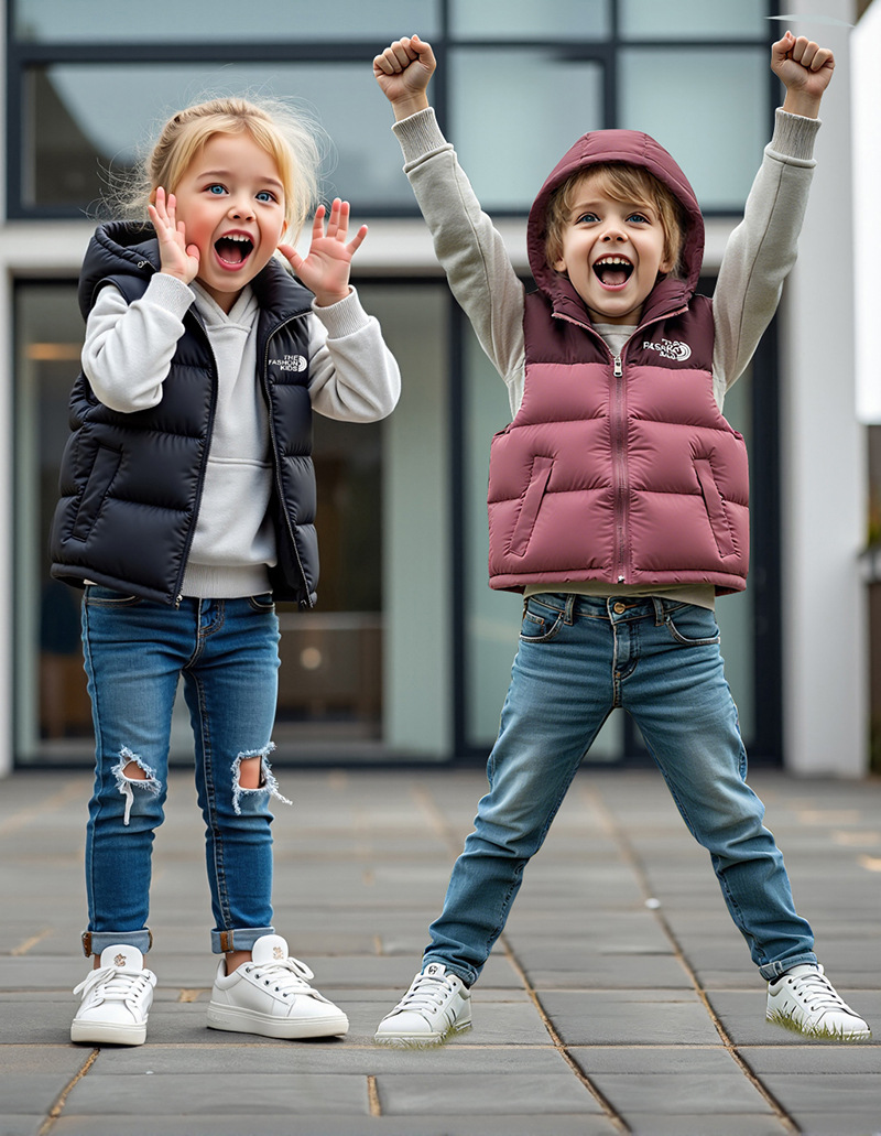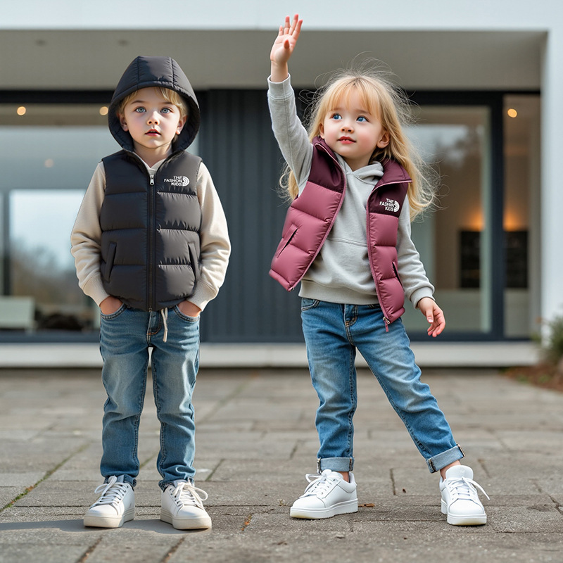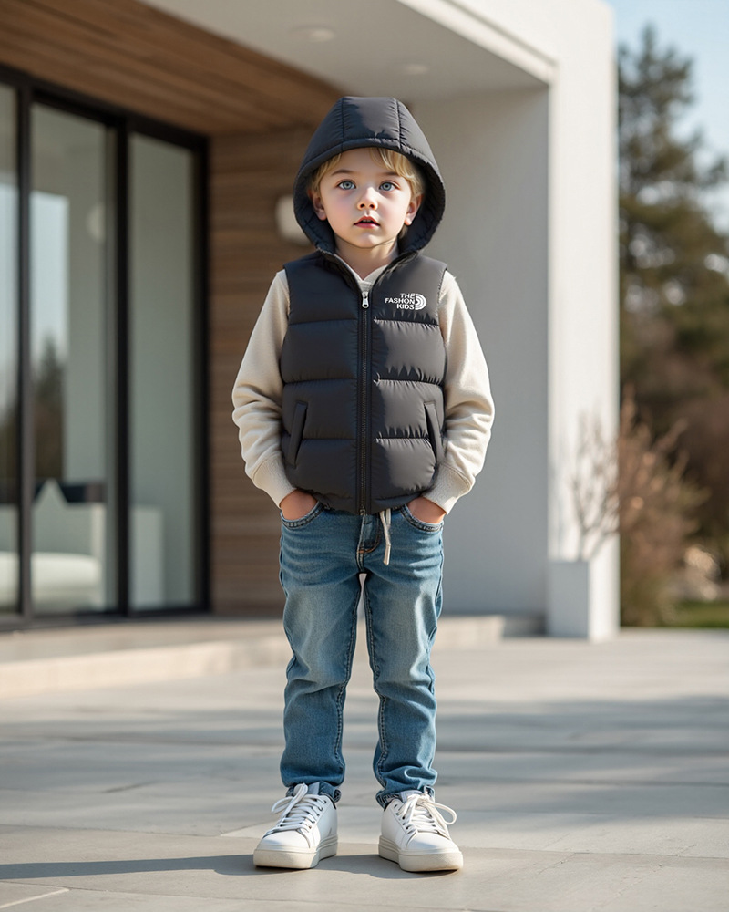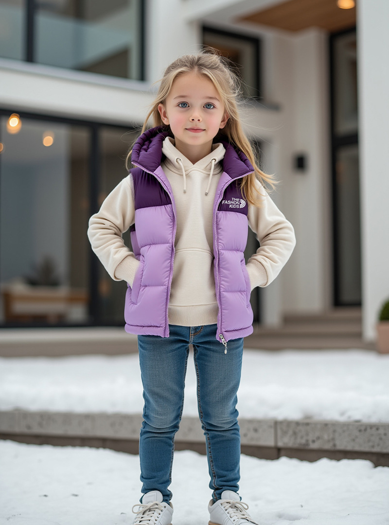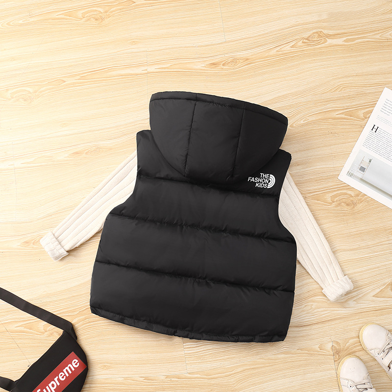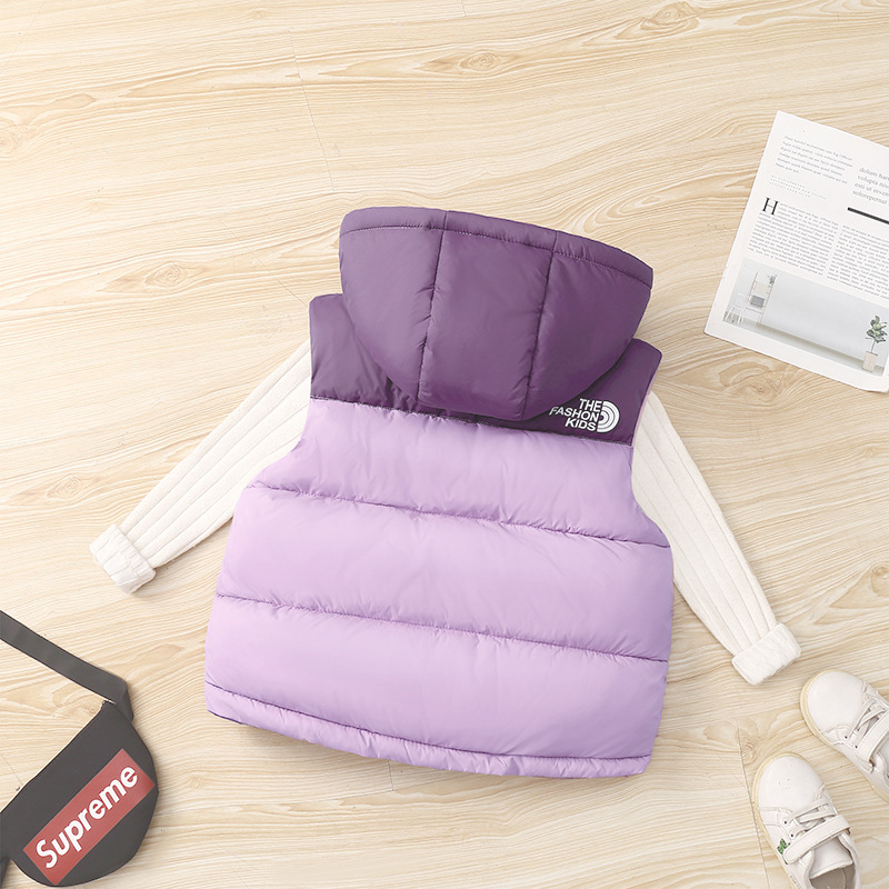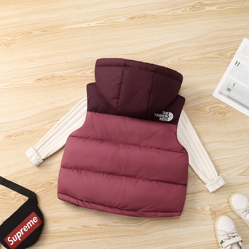 25 새로운 가을, 겨울 어린이 색상 차단 면화 두꺼운 스탠드 칼라 조끼 소년과 소녀, 중대형 어린이를위한 다용도 조끼스토어 가기