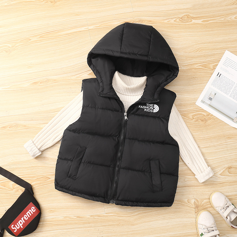 25 새로운 가을, 겨울 어린이 색상 차단 면화 두꺼운 스탠드 칼라 조끼 소년과 소녀, 중대형 어린이를위한 다용도 조끼