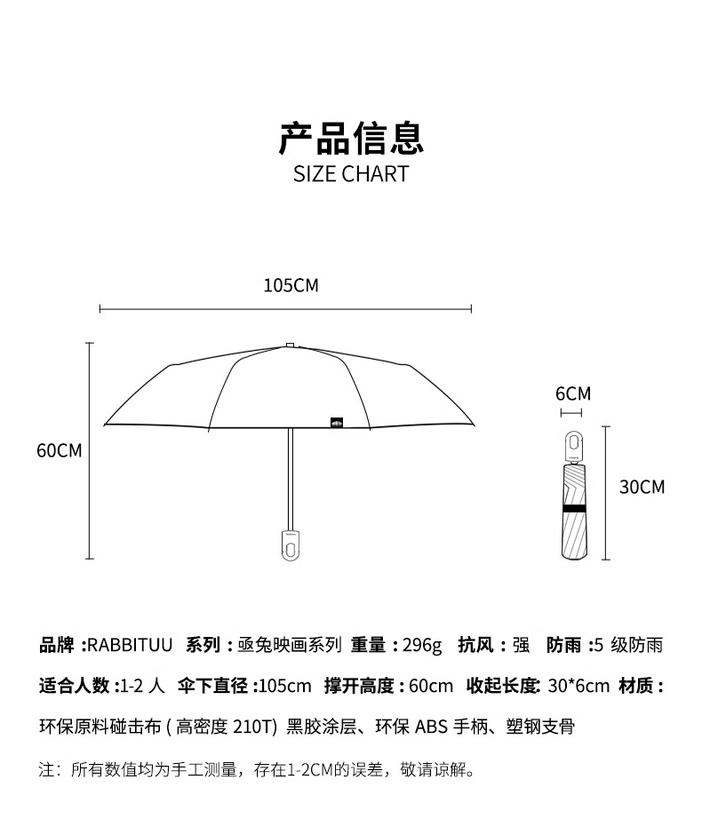 rabbituu [Bianjing Ruihe] 남성용 자동 우산, 비가 오나 눈이 오나, 여성용 자외선 차단 파라솔, 접이식 태양 우산