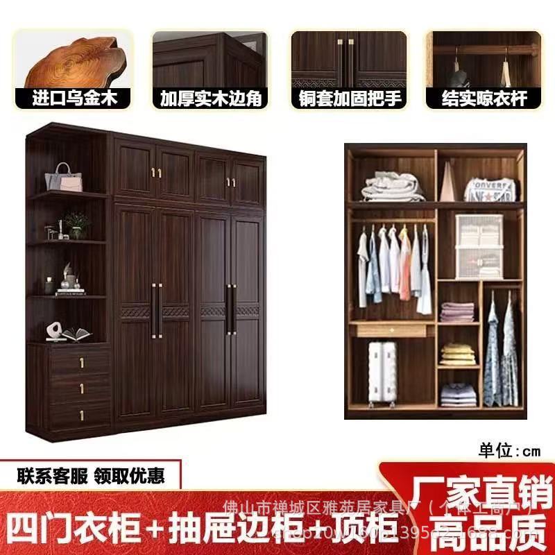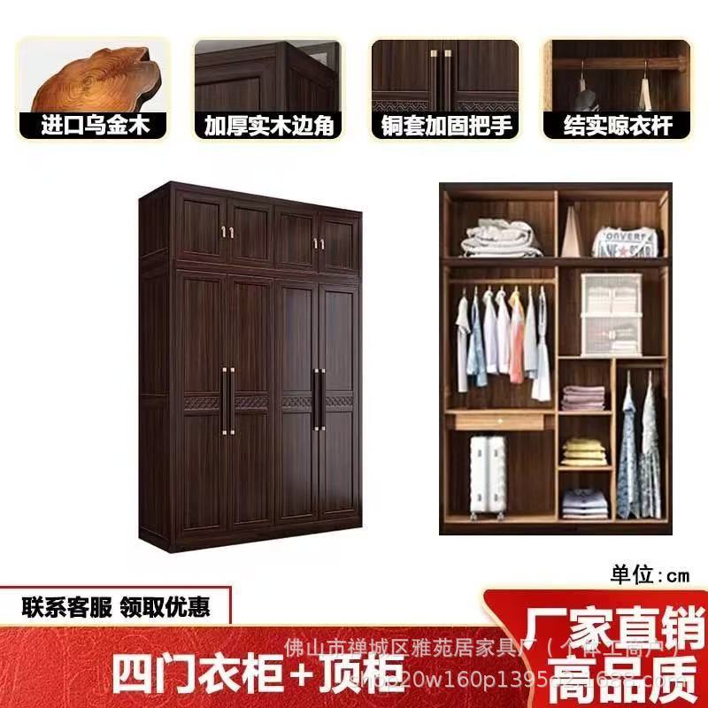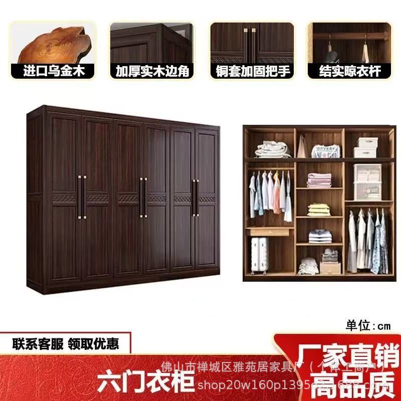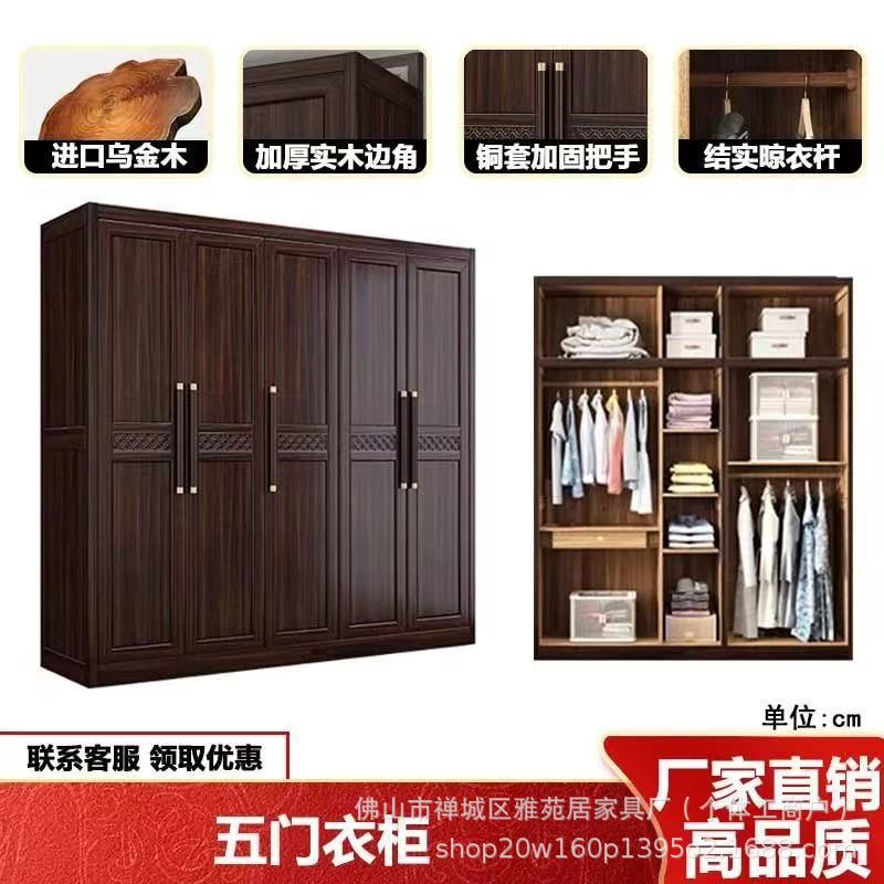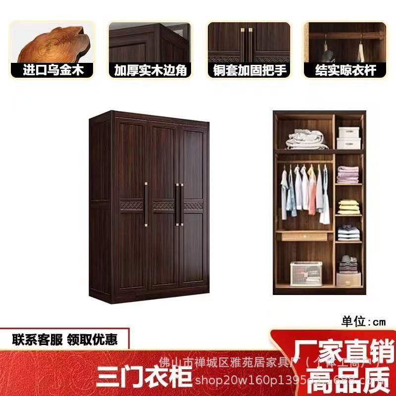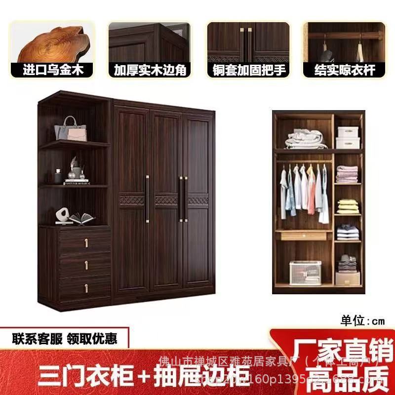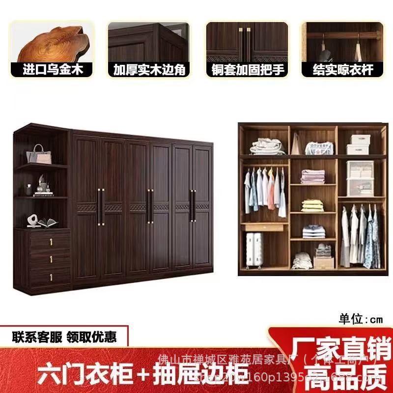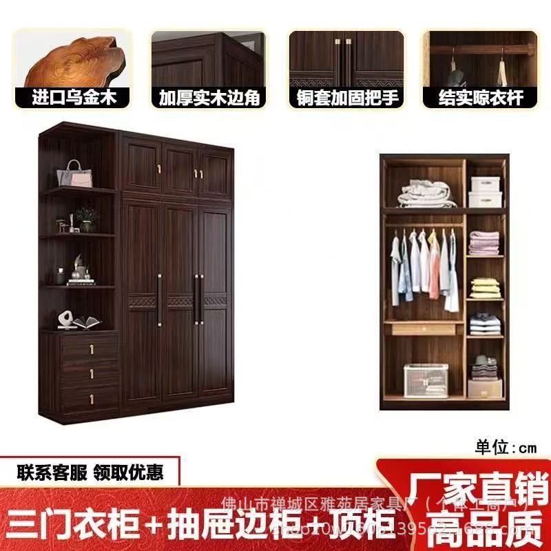 2025 새로운 검은 골드 우드 솔리드 우드 옷장 홈 침실 현대 간단한 로그 옷장 스토리지 캐비닛 공장 직접 판매