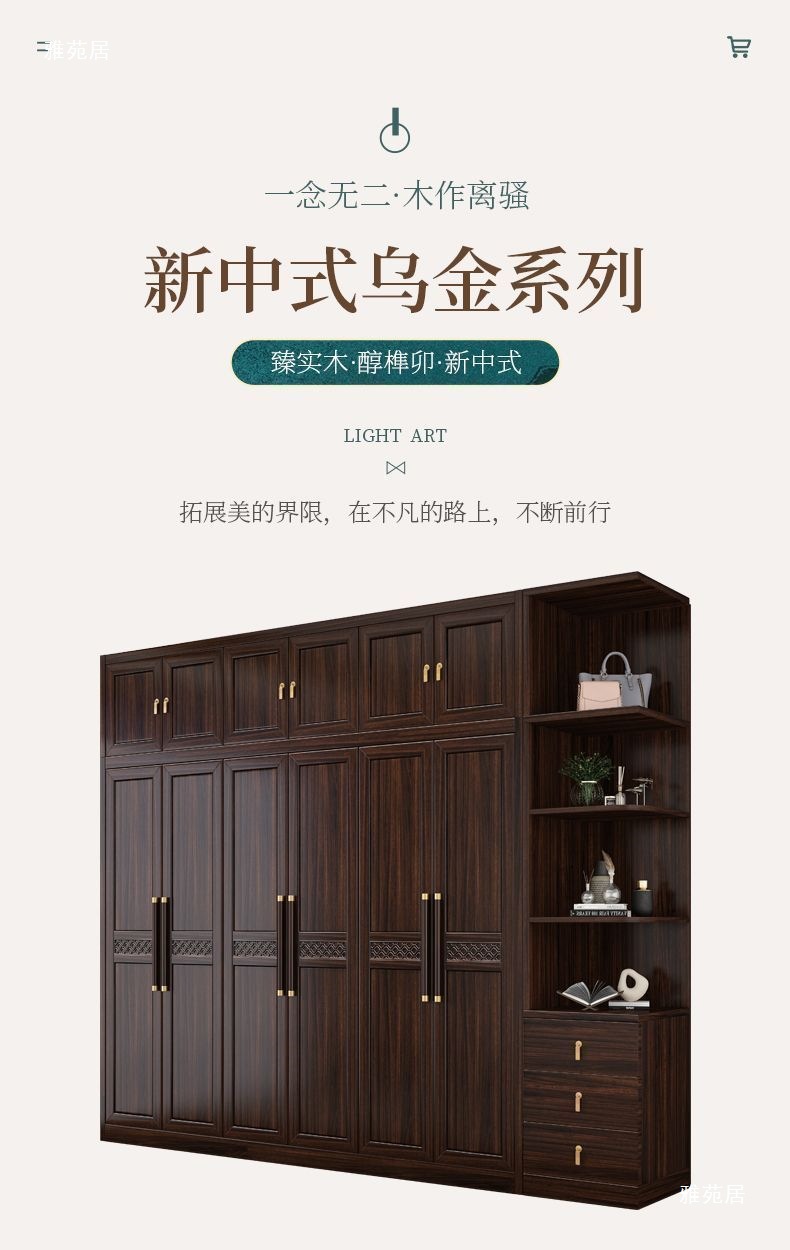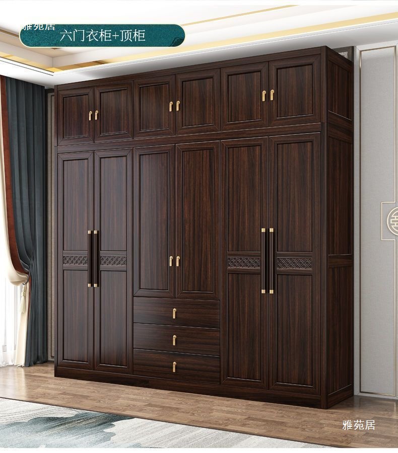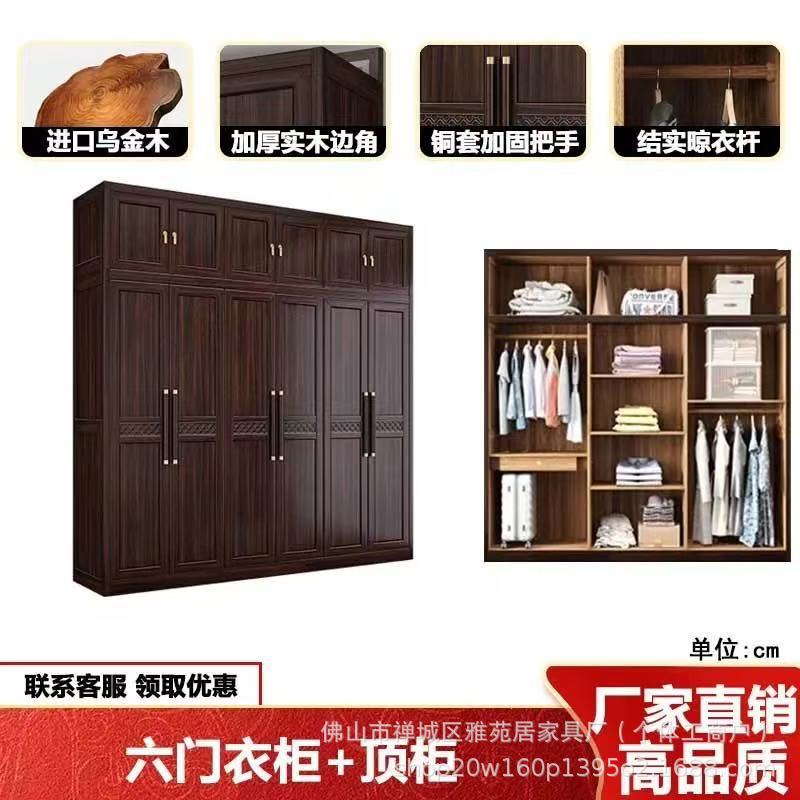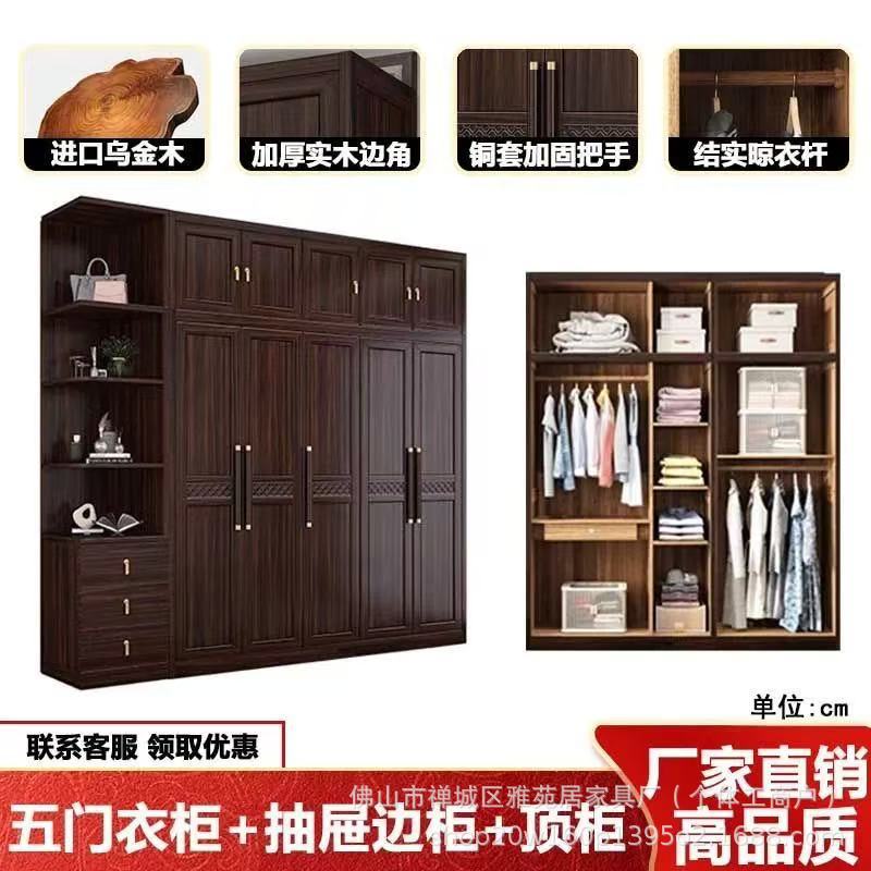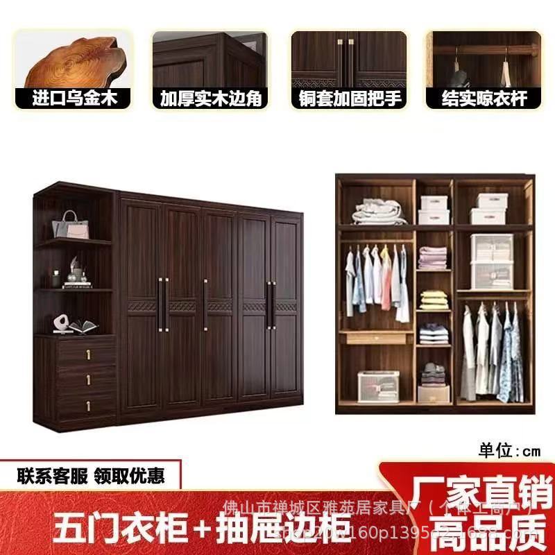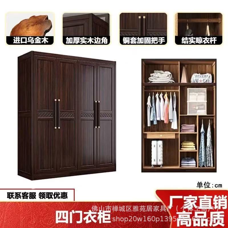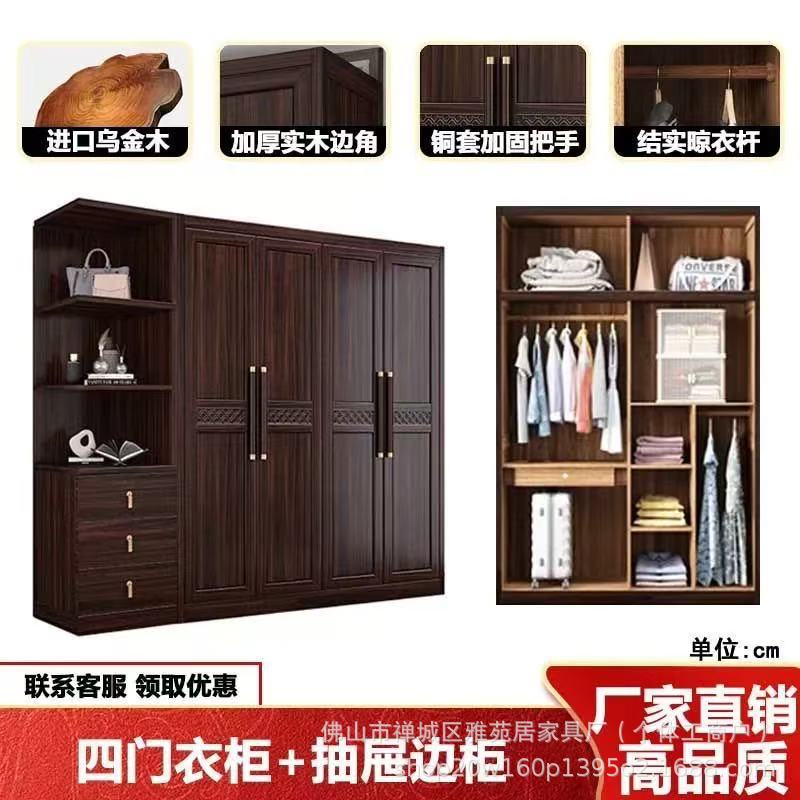2025 새로운 검은 골드 우드 솔리드 우드 옷장 홈 침실 현대 간단한 로그 옷장 스토리지 캐비닛 공장 직접 판매