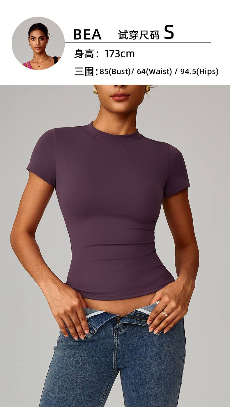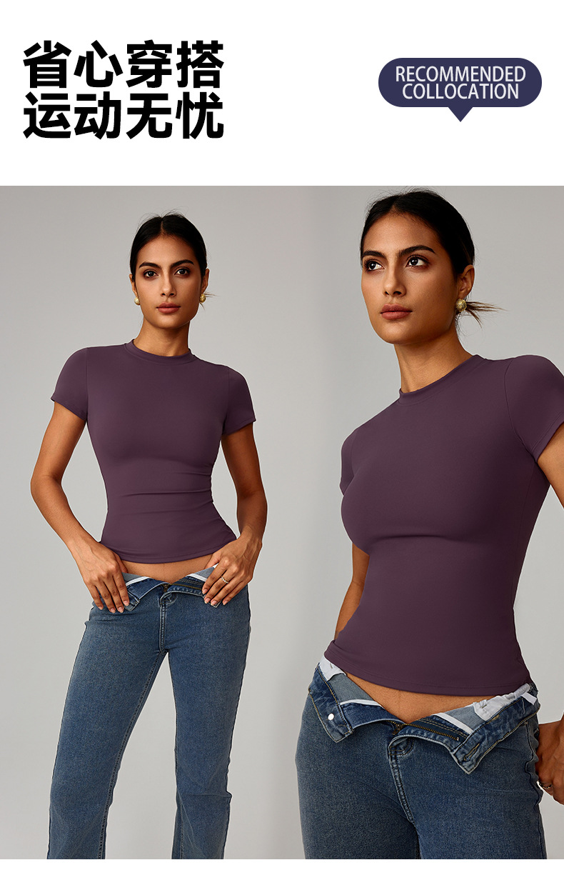 크로스보더 봄 티셔츠 속건성 요가복 반팔 피트니스 탑 블라우스 야외 러닝 스포츠 반팔 여성 8455