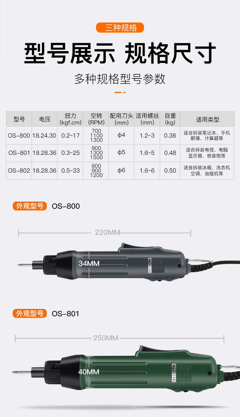 Oushen 전기 배치 스트레이트 핸들 스트레이트 플러그형 소형 전기 드라이버 전기 드라이버 OS-800 OS-801 OS-802