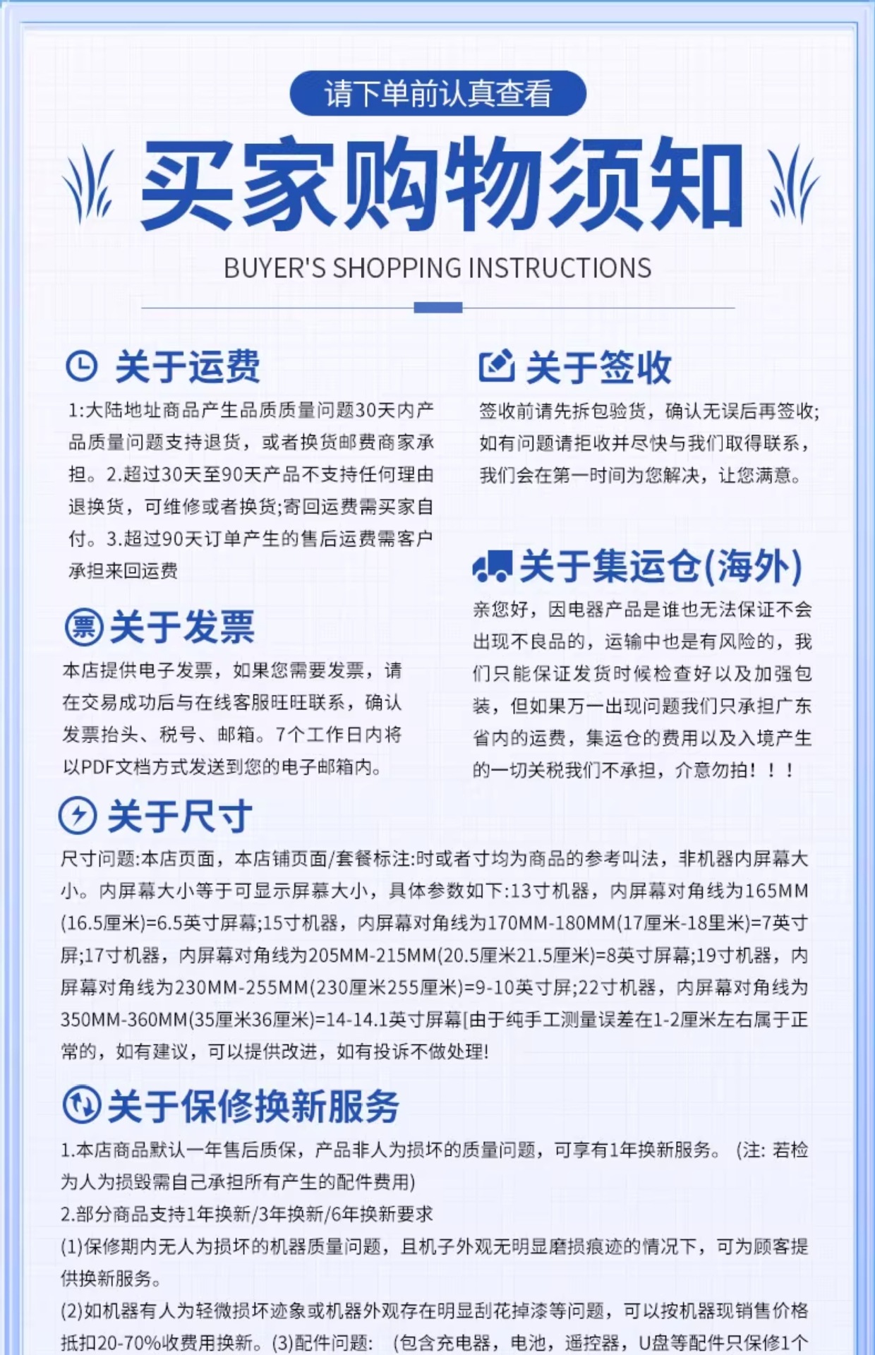 • 22inch Ultra-clear 업그레이드 버전이 표준으로 제공됩니다. [카드/U 디스크를 직접 준비해야 함] - 공식 표준