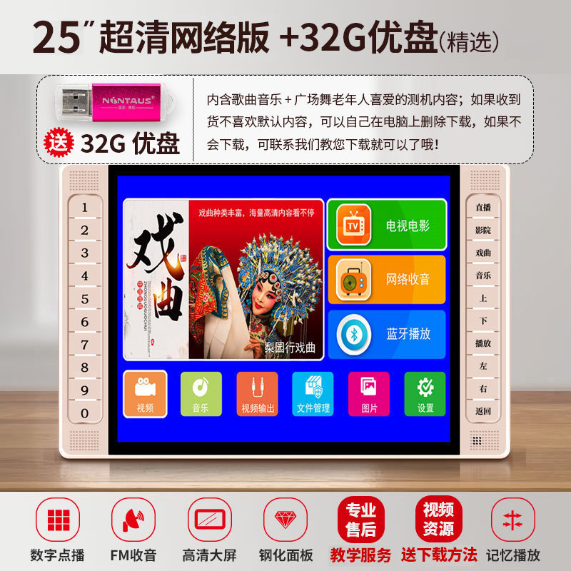 • 25inch Ultra-clear 온라인 버전 + 32GU 디스크 + [내장 1122 파일] (온라인 영화 및 TV) + Bluetooth.-공식 표준 구성