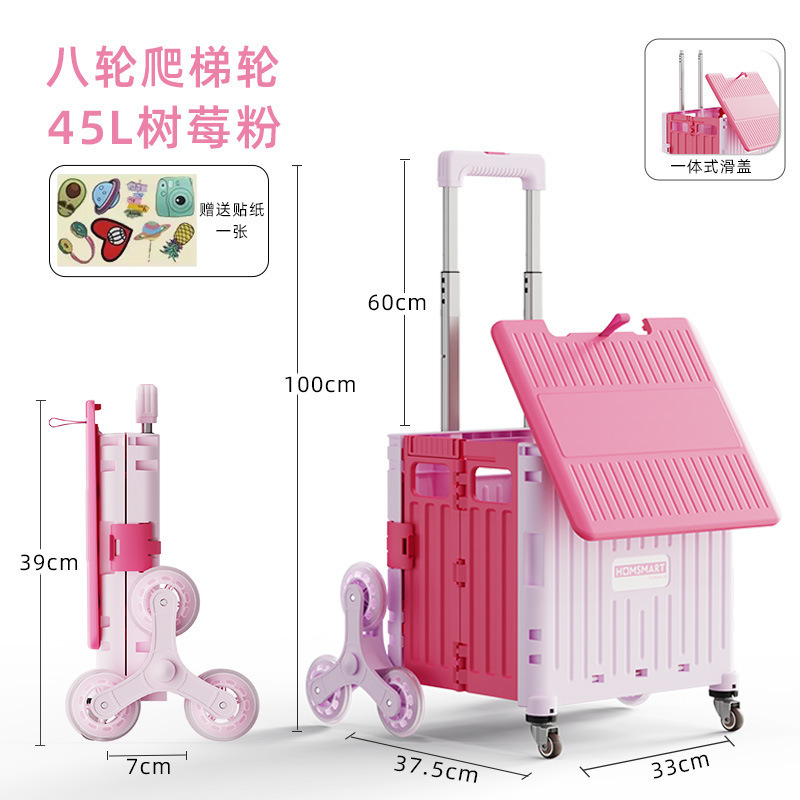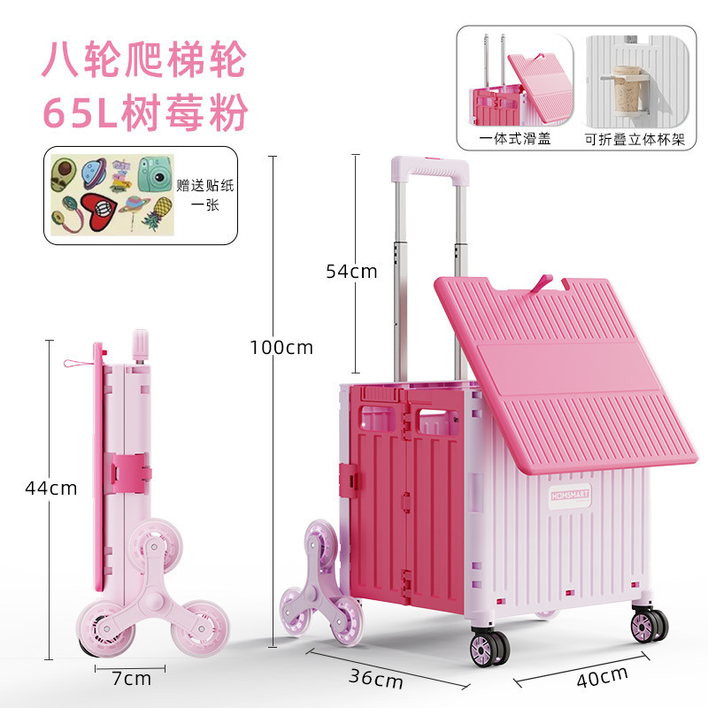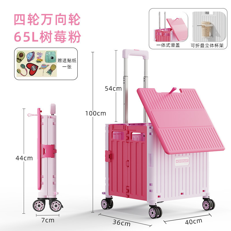 • 대형 4륜 범용 통합 슬라이딩 커버 65L 쇼핑 카트 라즈베리 파우더