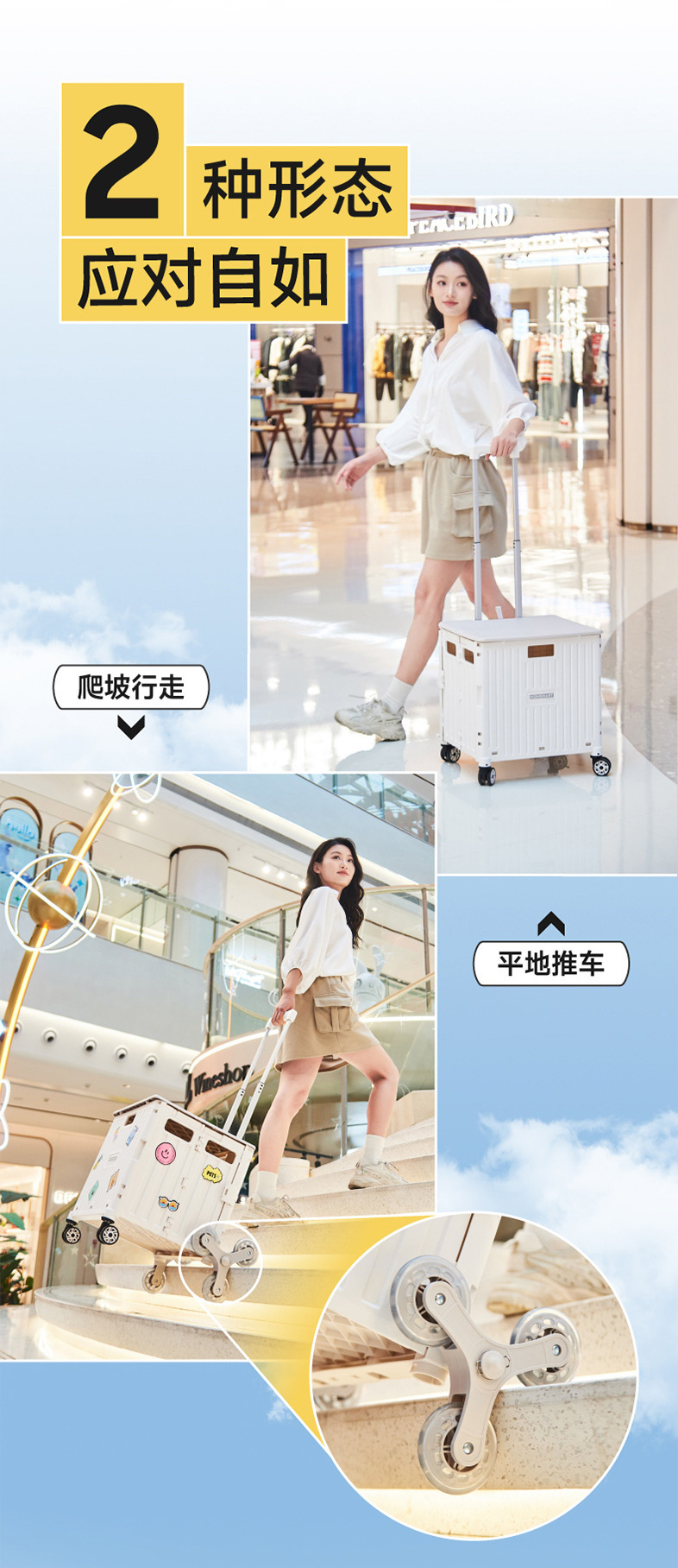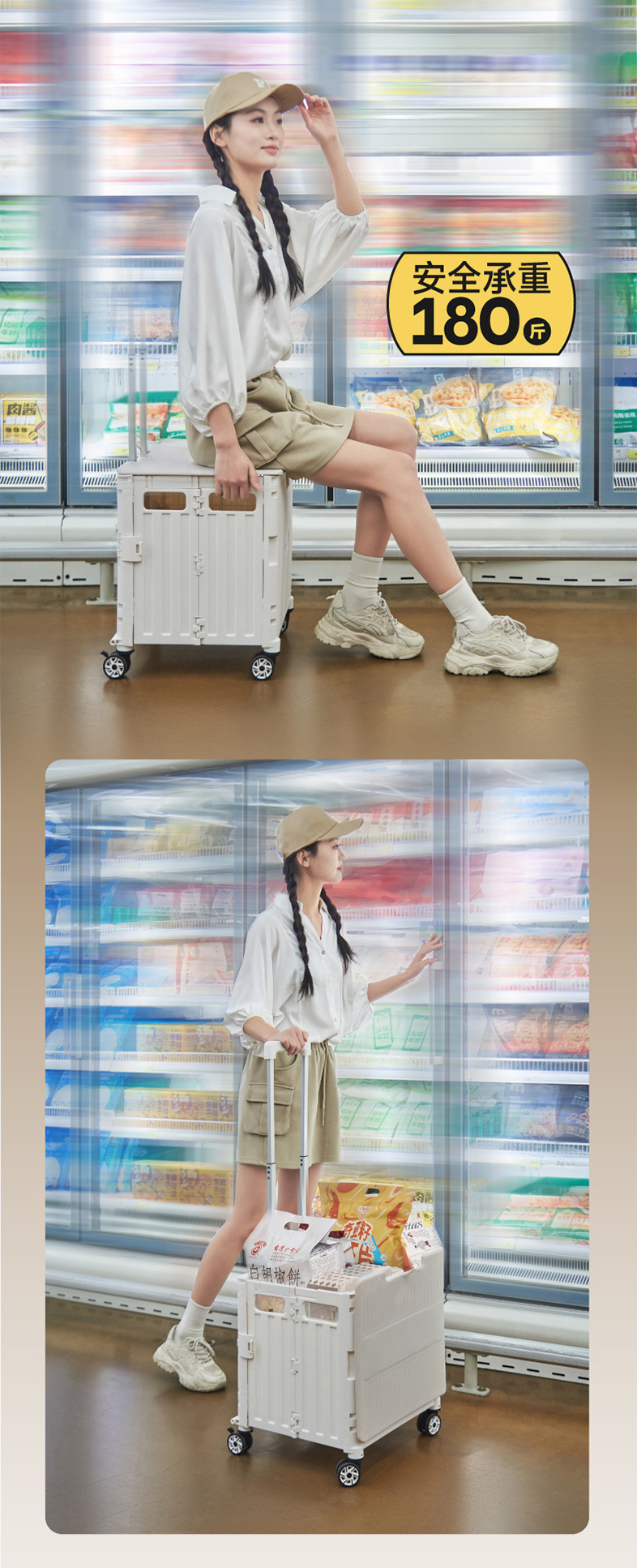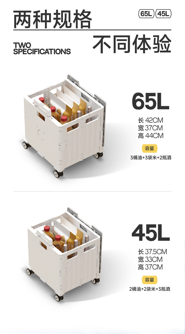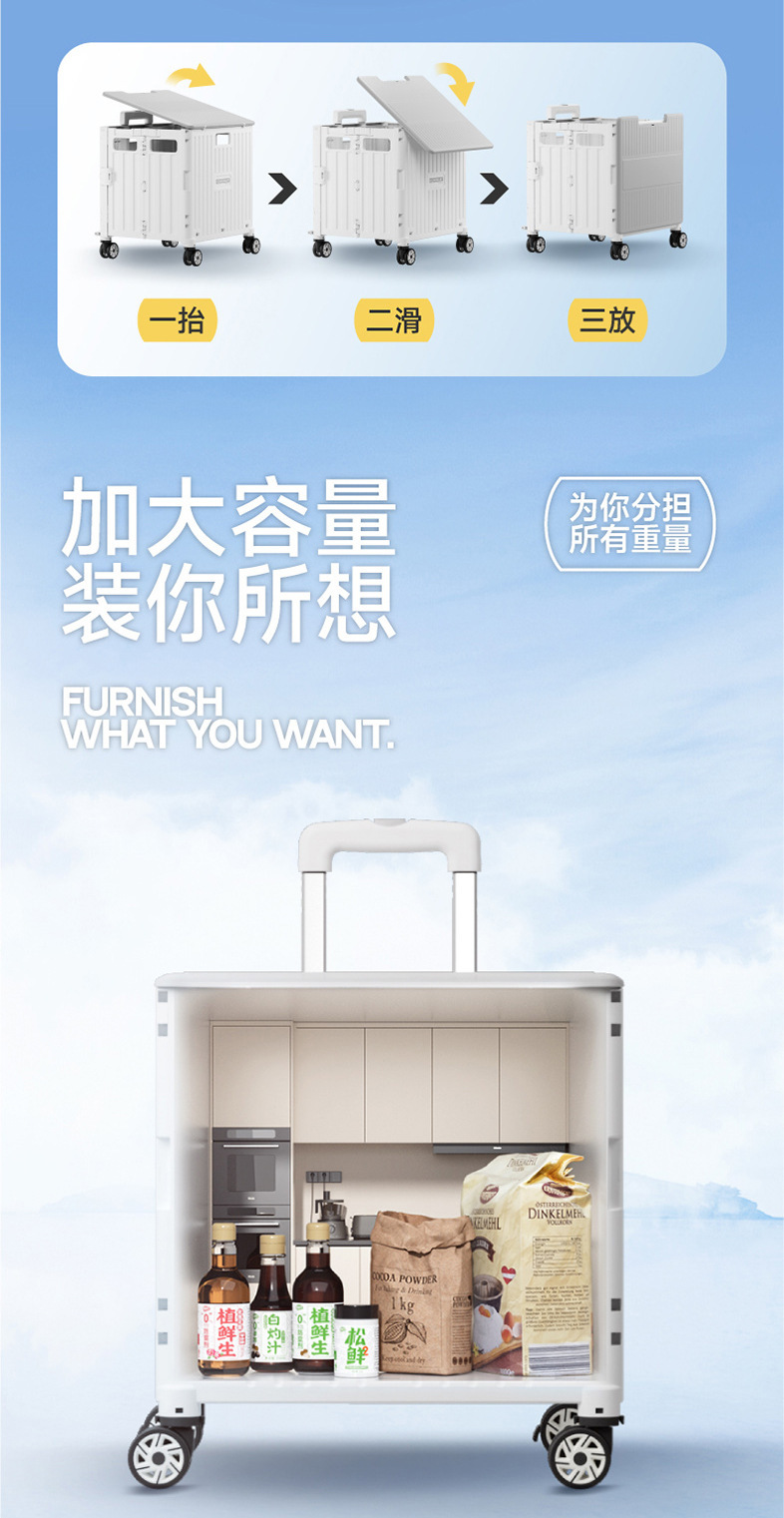 • 대형 4륜 범용 통합 슬라이딩 커버 65L 쇼핑 카트 리세미
