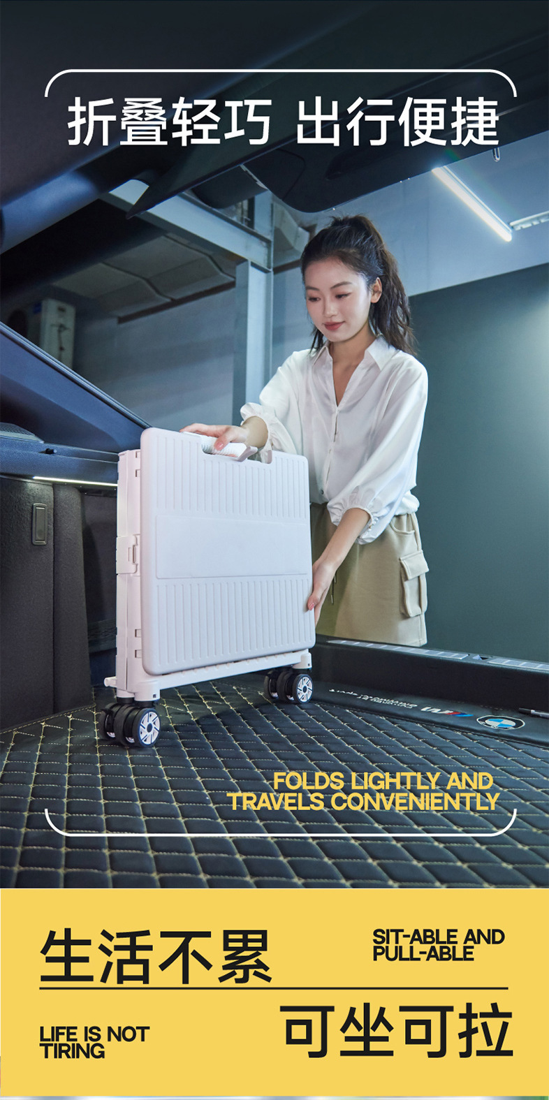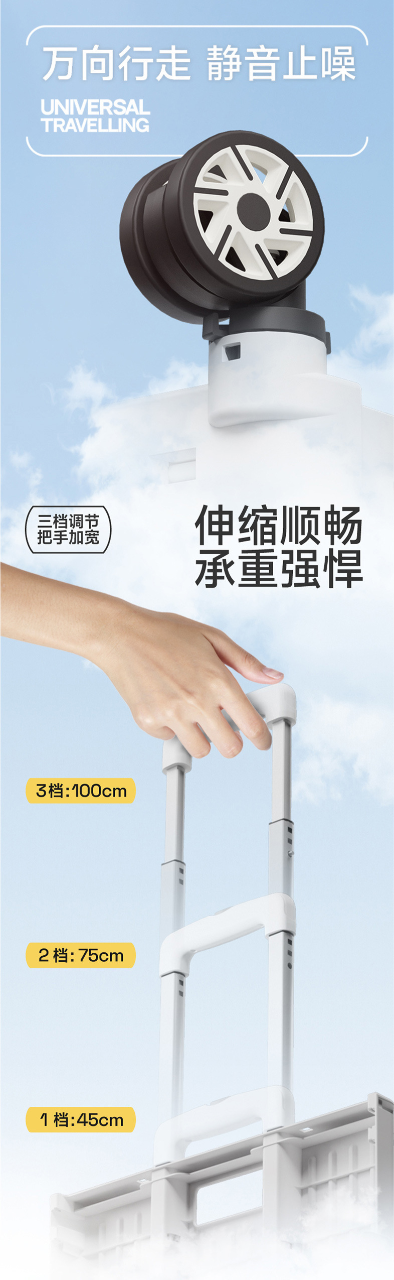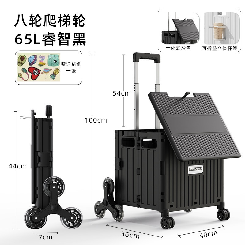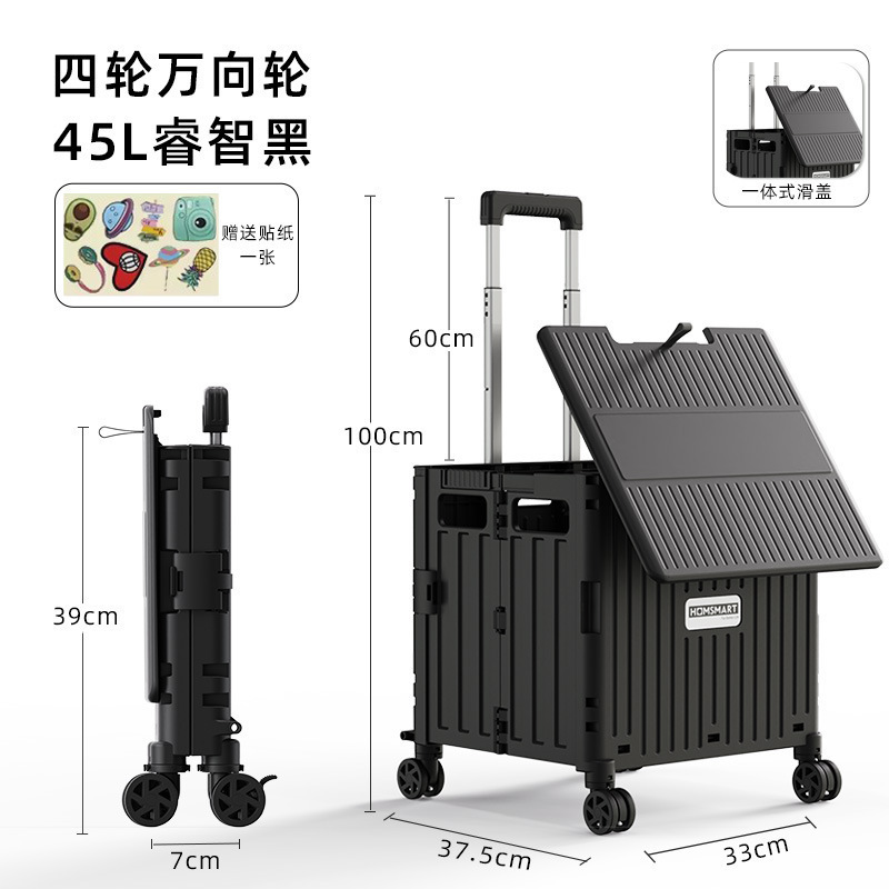 • 대형 4륜 범용 통합 슬라이딩 커버 65L 쇼핑 카트 스마트 블랙