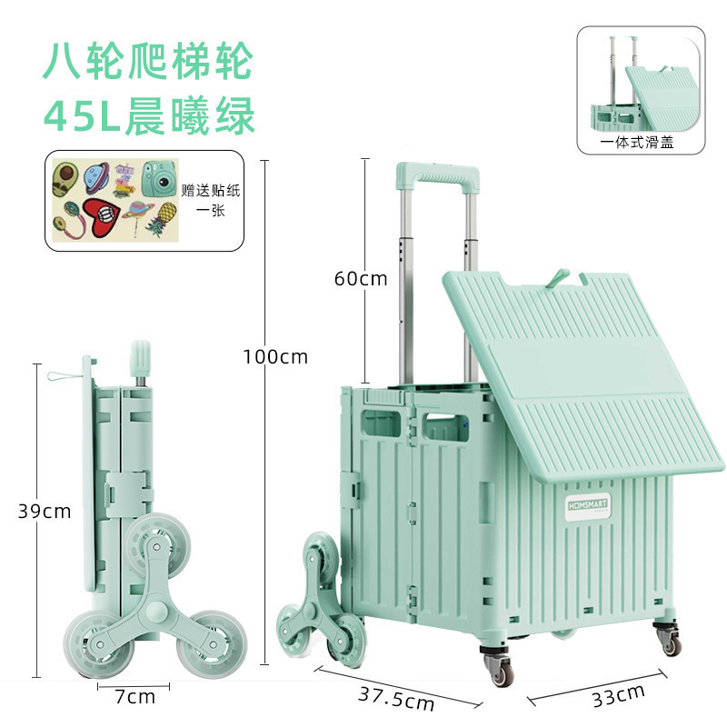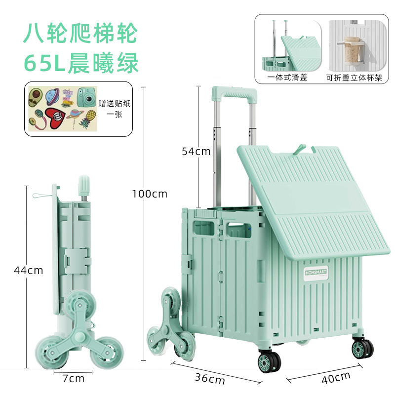 • 대형 4륜 범용 통합 슬라이딩 커버 65L 쇼핑 카트 새벽 녹색