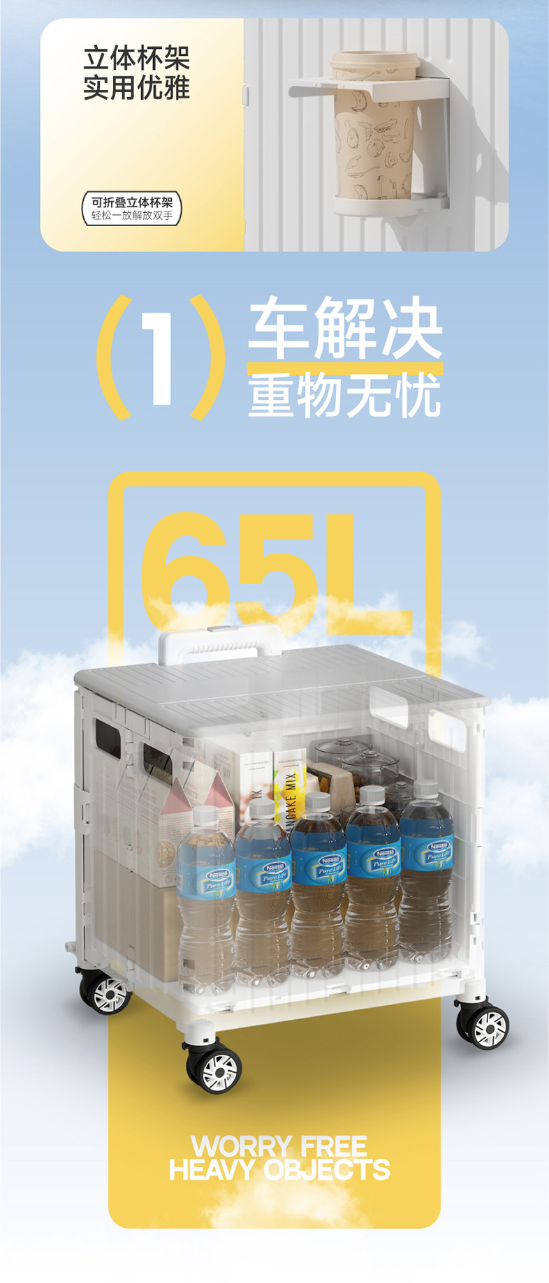 • 대형 8륜 사다리 일체형 슬라이딩 커버 65L 장바구니 리세미