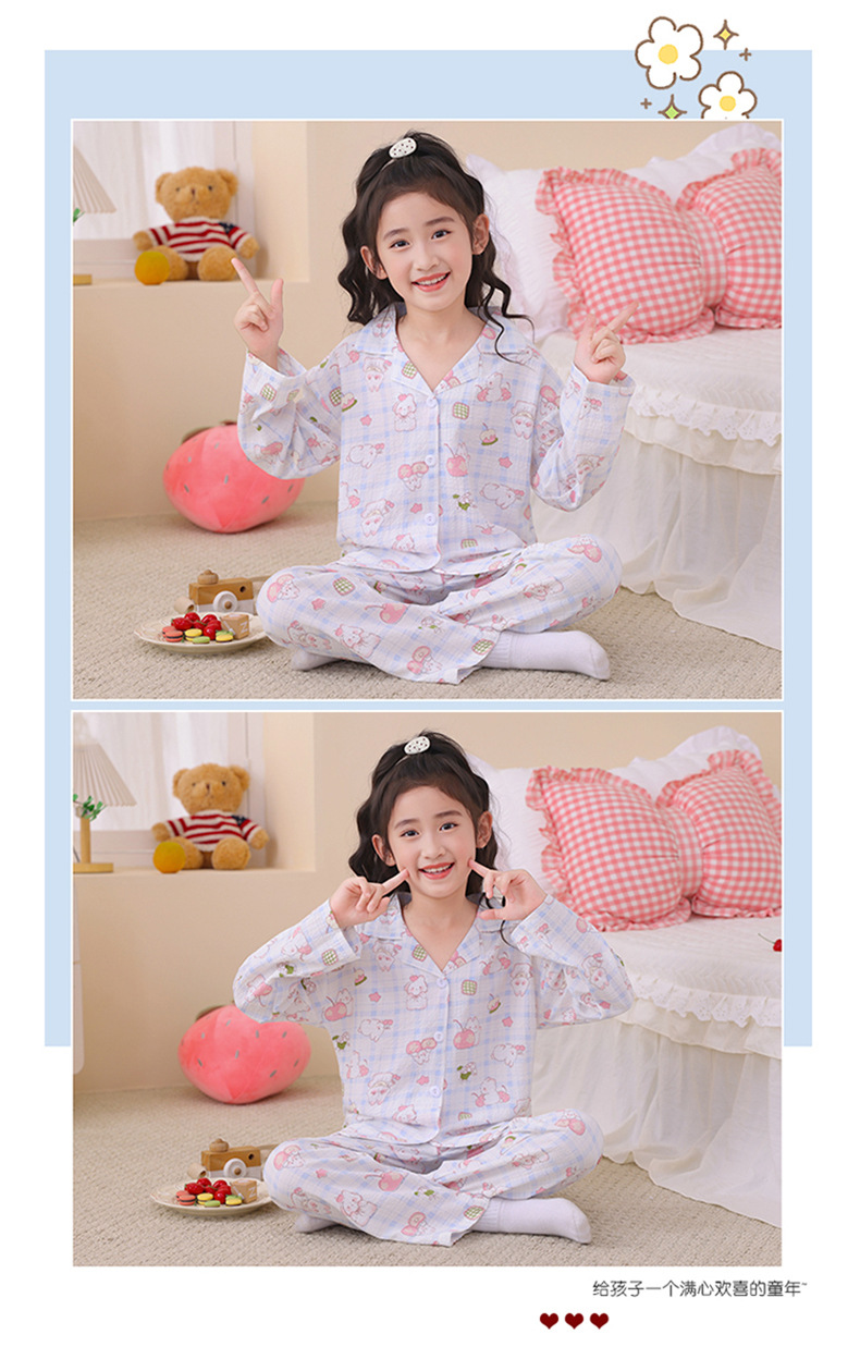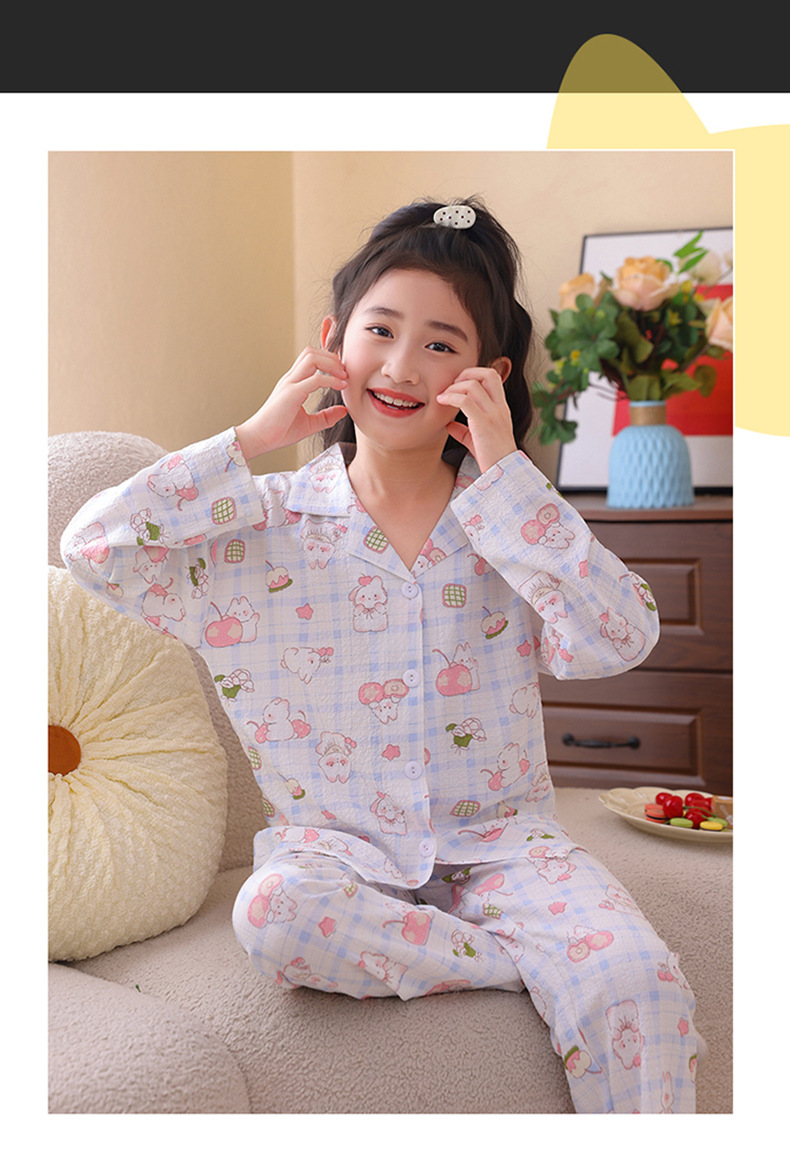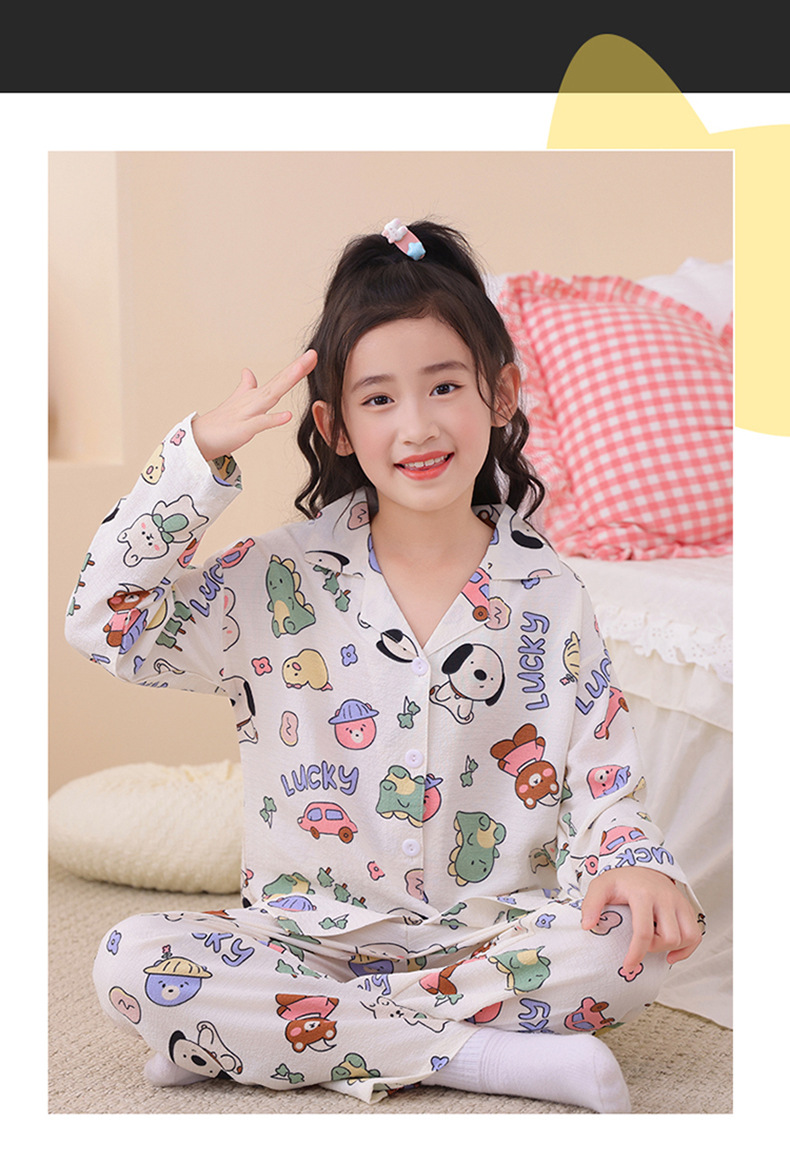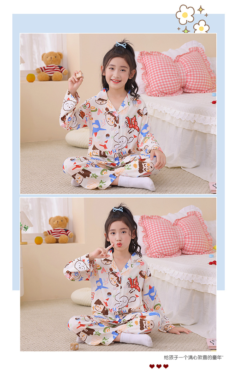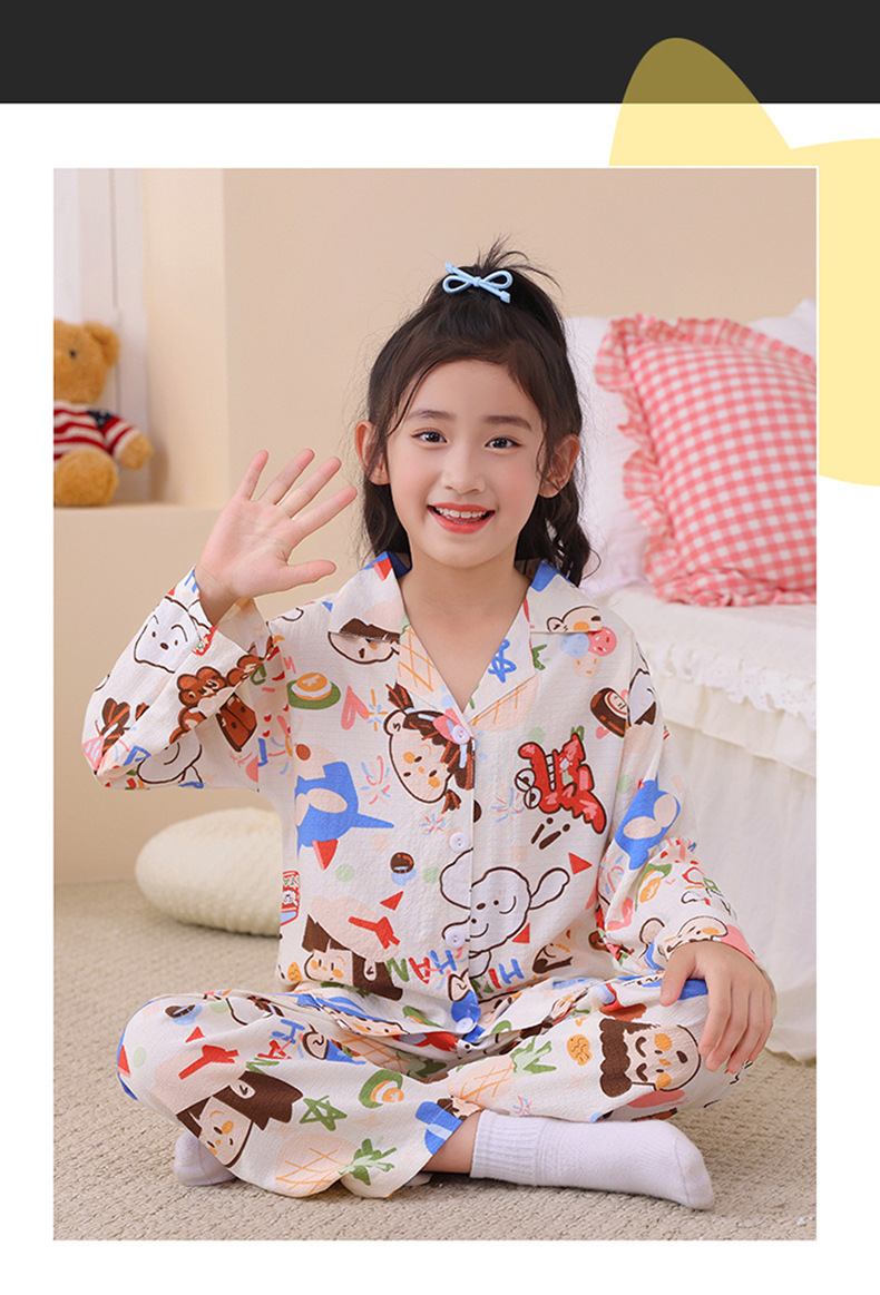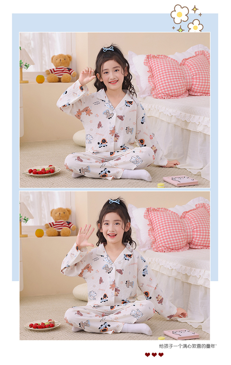 한국 스타일 봄과 여름 새로운 어린이 만화 귀여운 잠옷 봄과 가을 버블 코튼 긴팔 소녀 홈웨어 세트스토어 가기