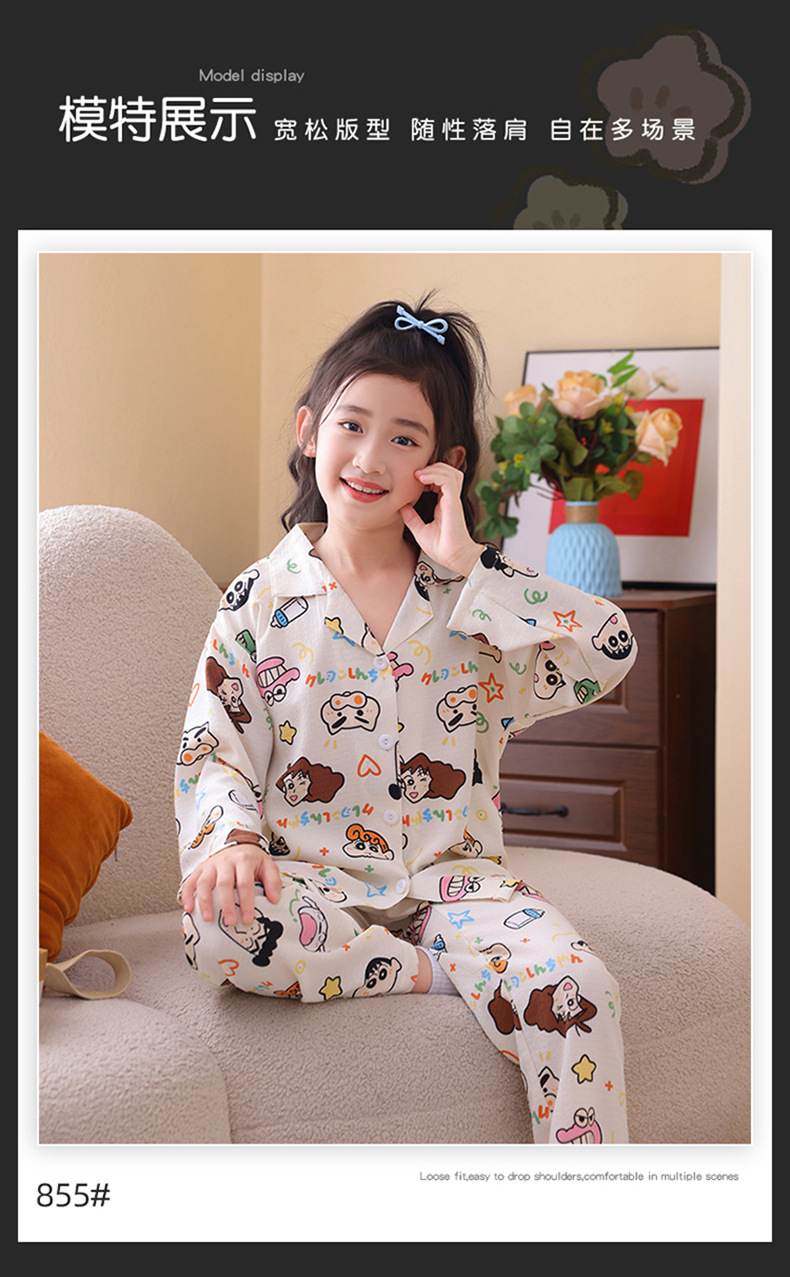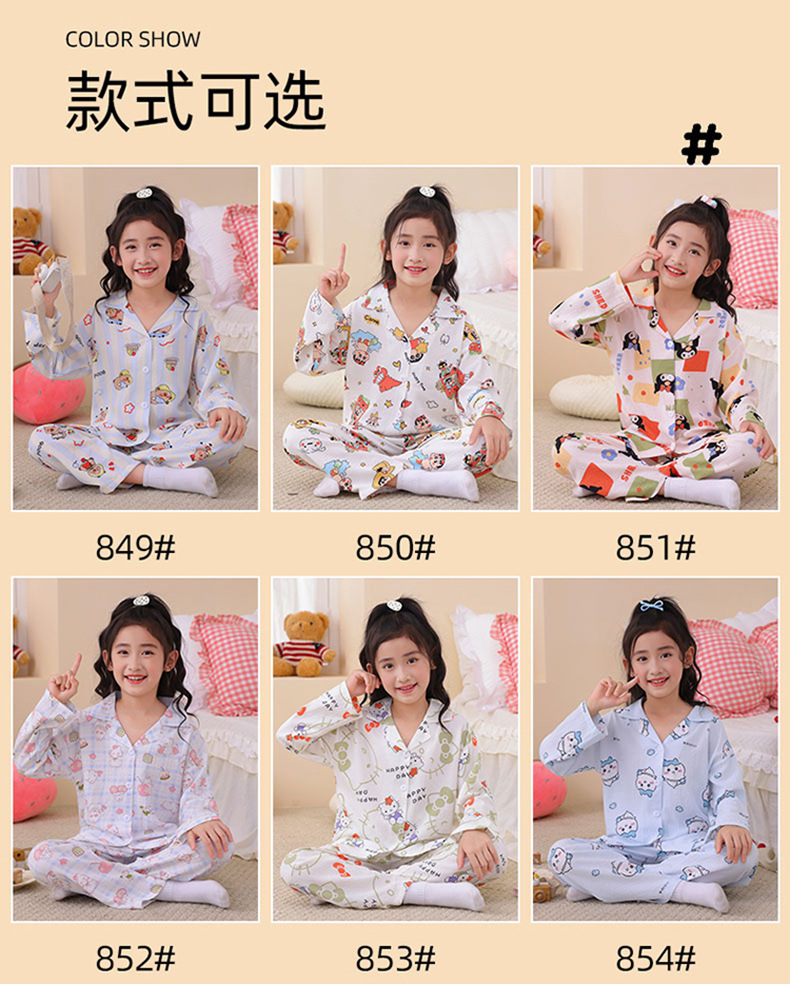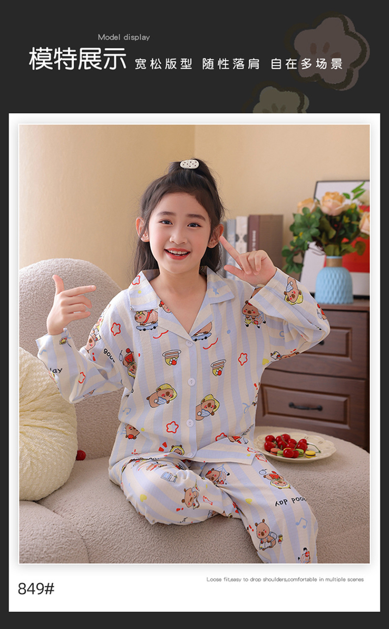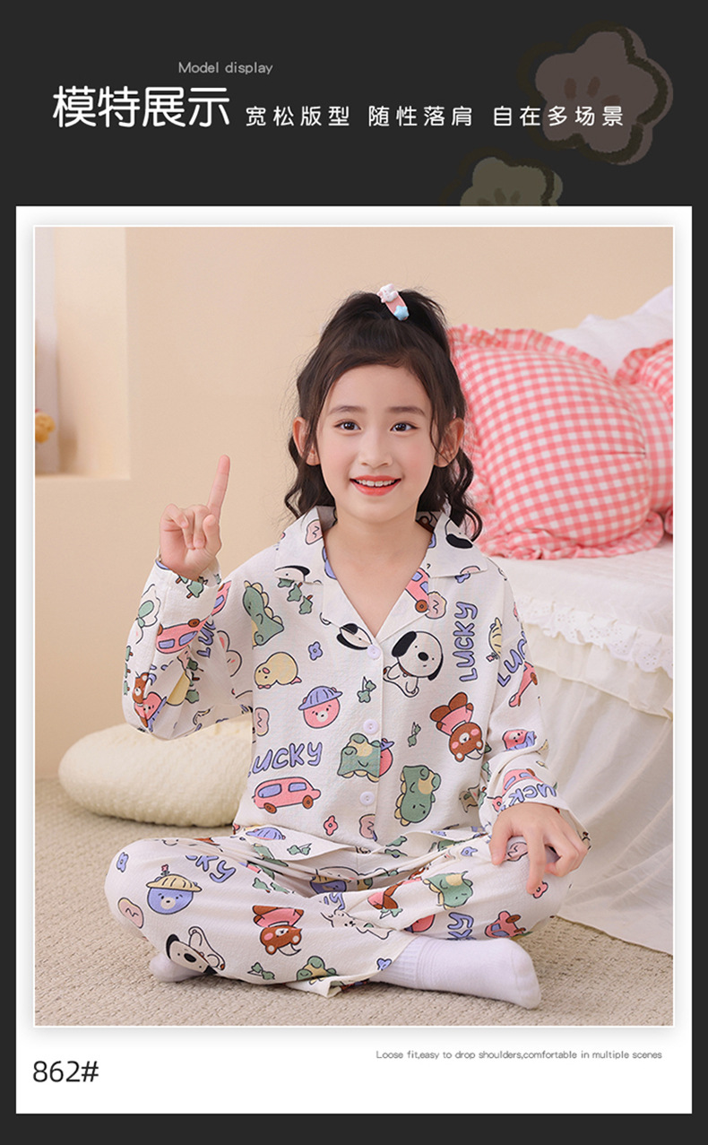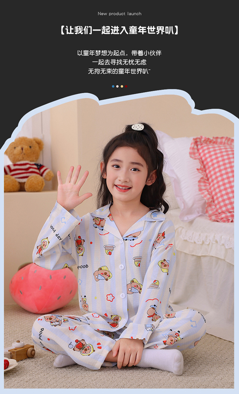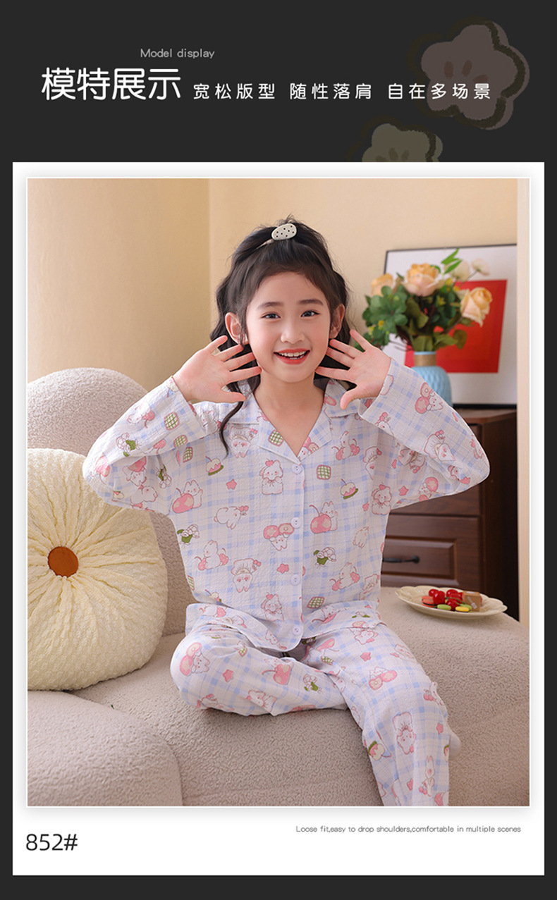 한국 스타일 봄과 여름 새로운 어린이 만화 귀여운 잠옷 봄과 가을 버블 코튼 긴팔 소녀 홈웨어 세트스토어 가기