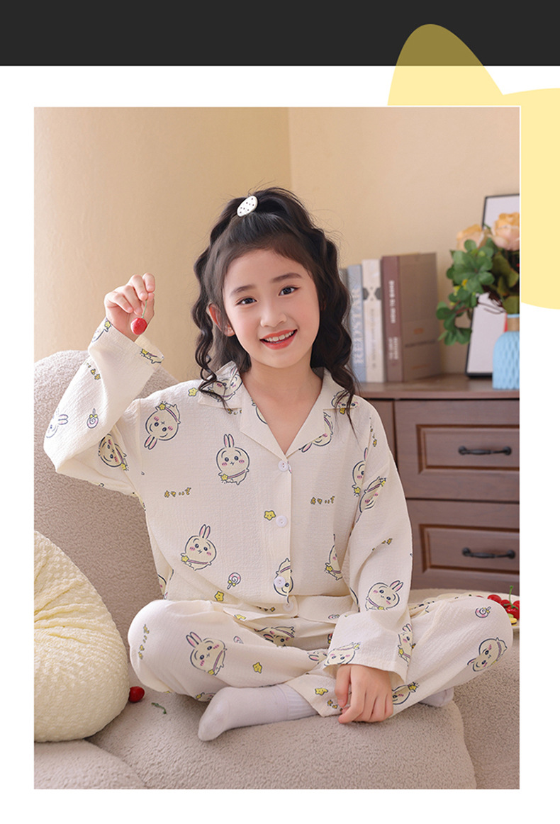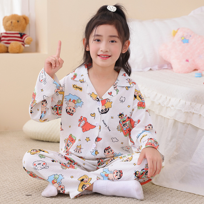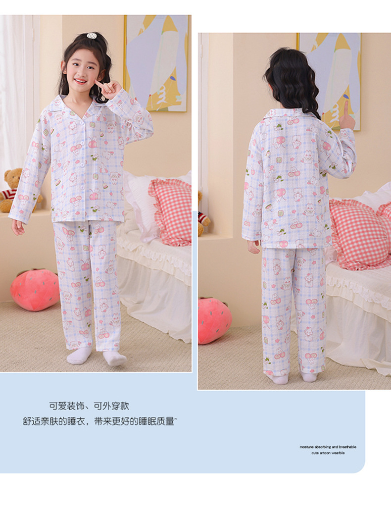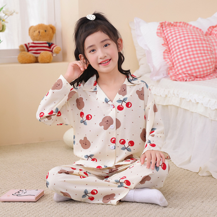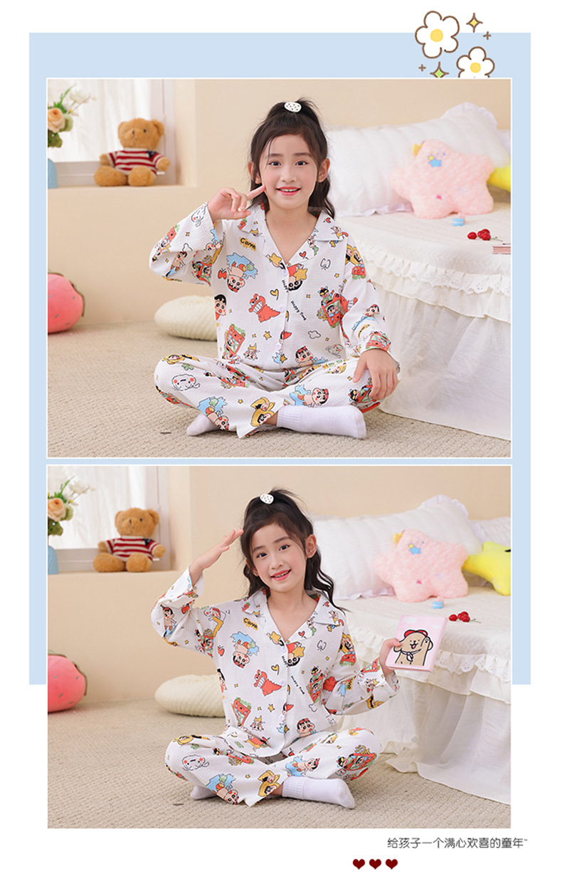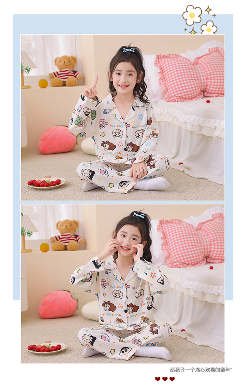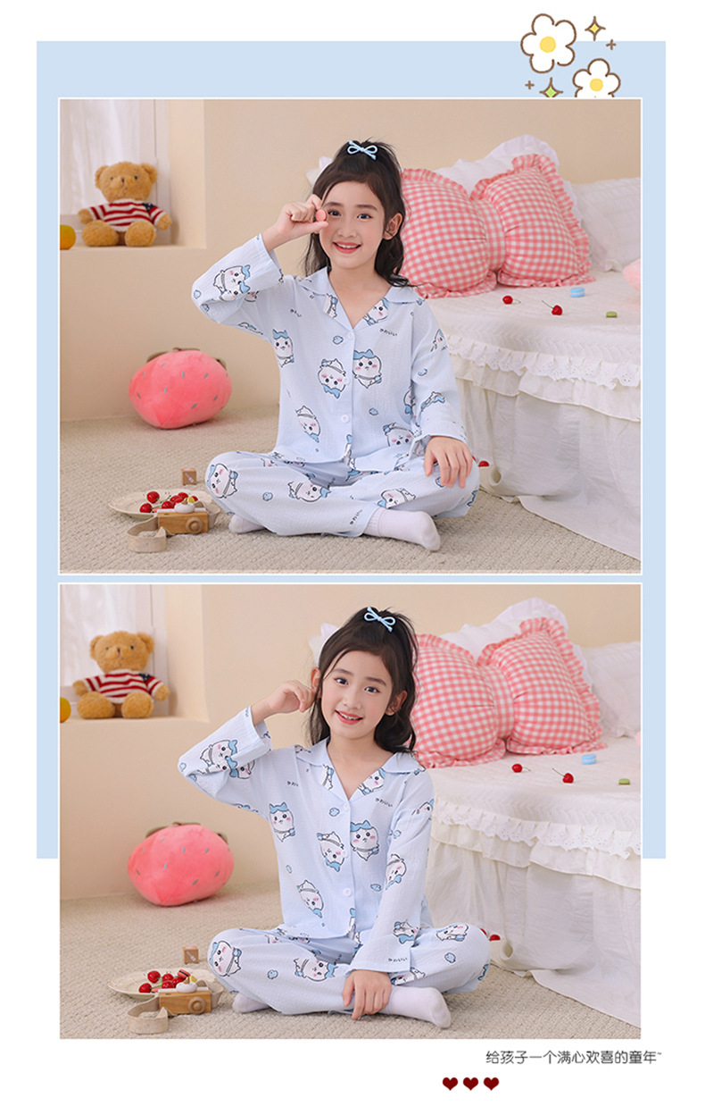 한국 스타일 봄과 여름 새로운 어린이 만화 귀여운 잠옷 봄과 가을 버블 코튼 긴팔 소녀 홈웨어 세트