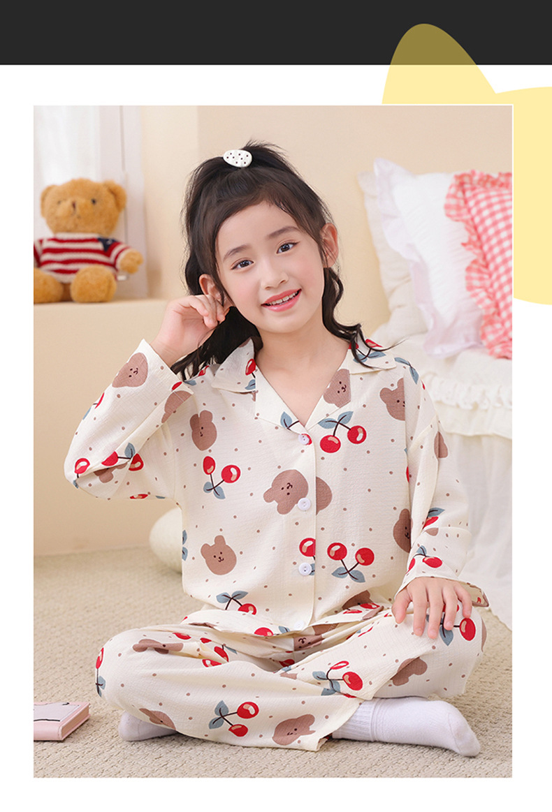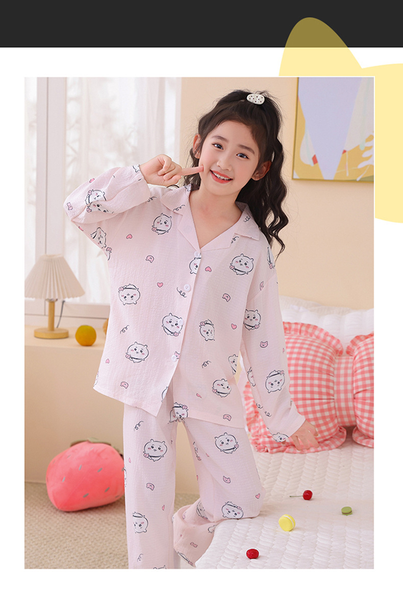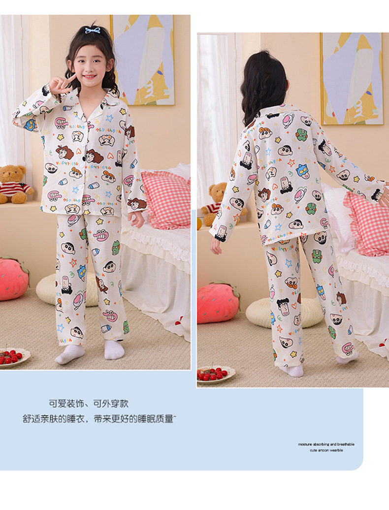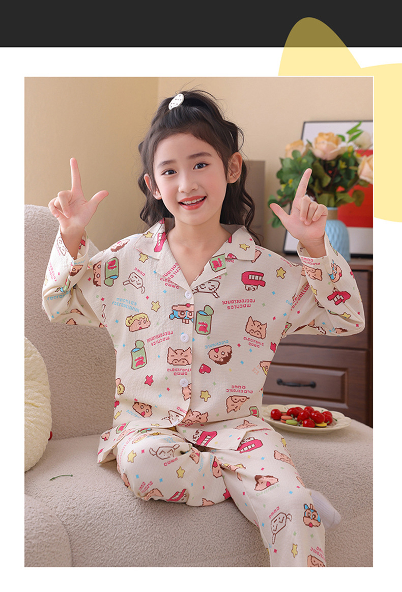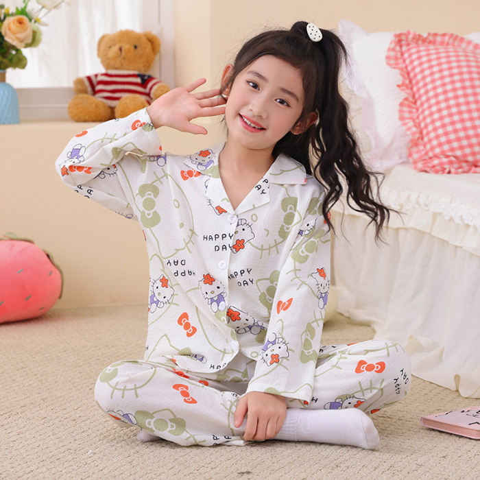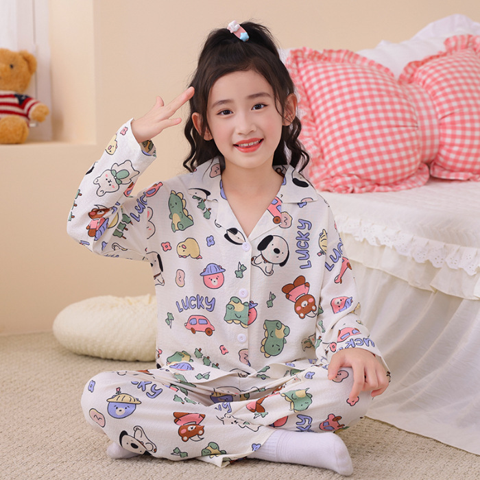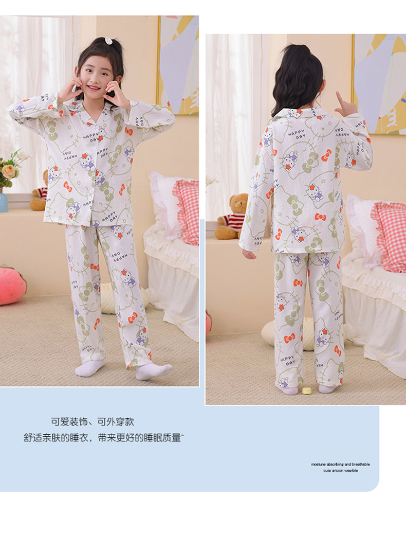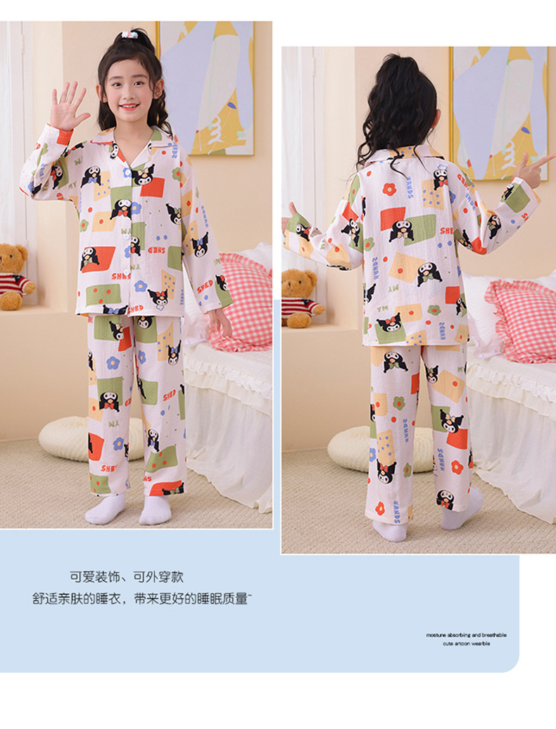 한국 스타일 봄과 여름 새로운 어린이 만화 귀여운 잠옷 봄과 가을 버블 코튼 긴팔 소녀 홈웨어 세트