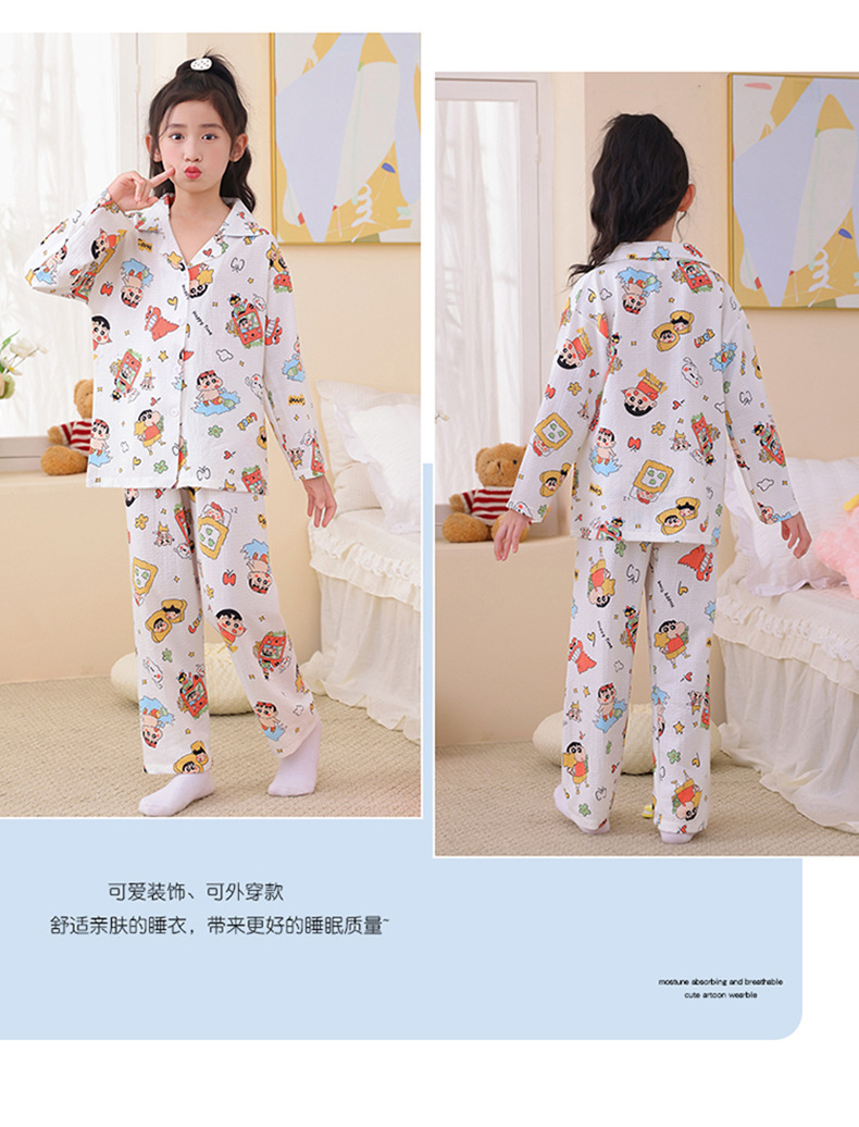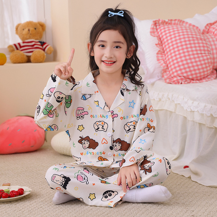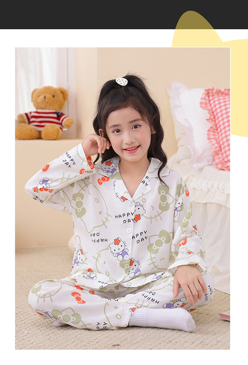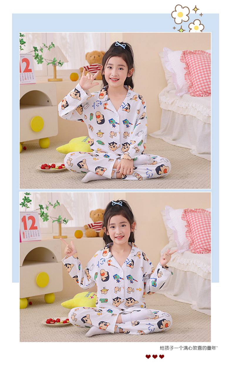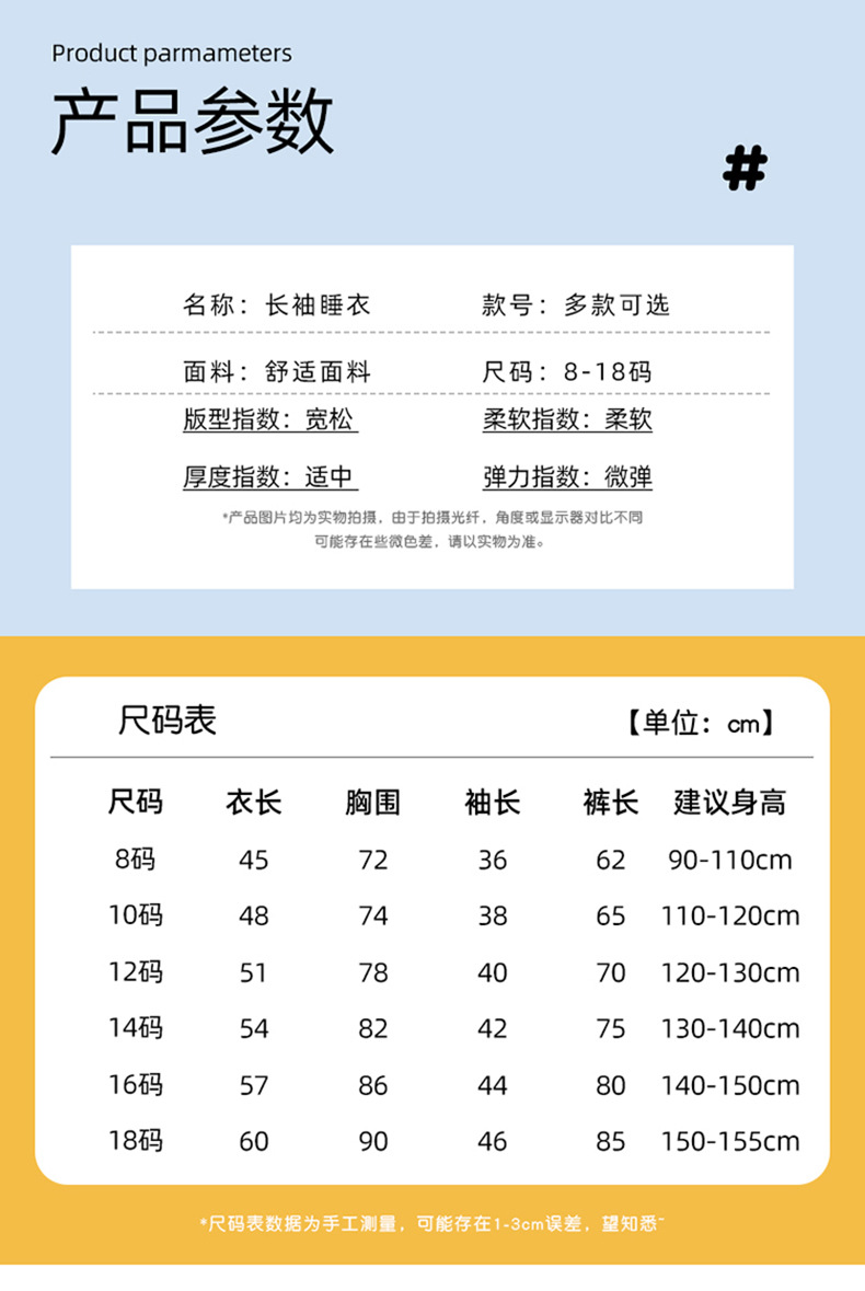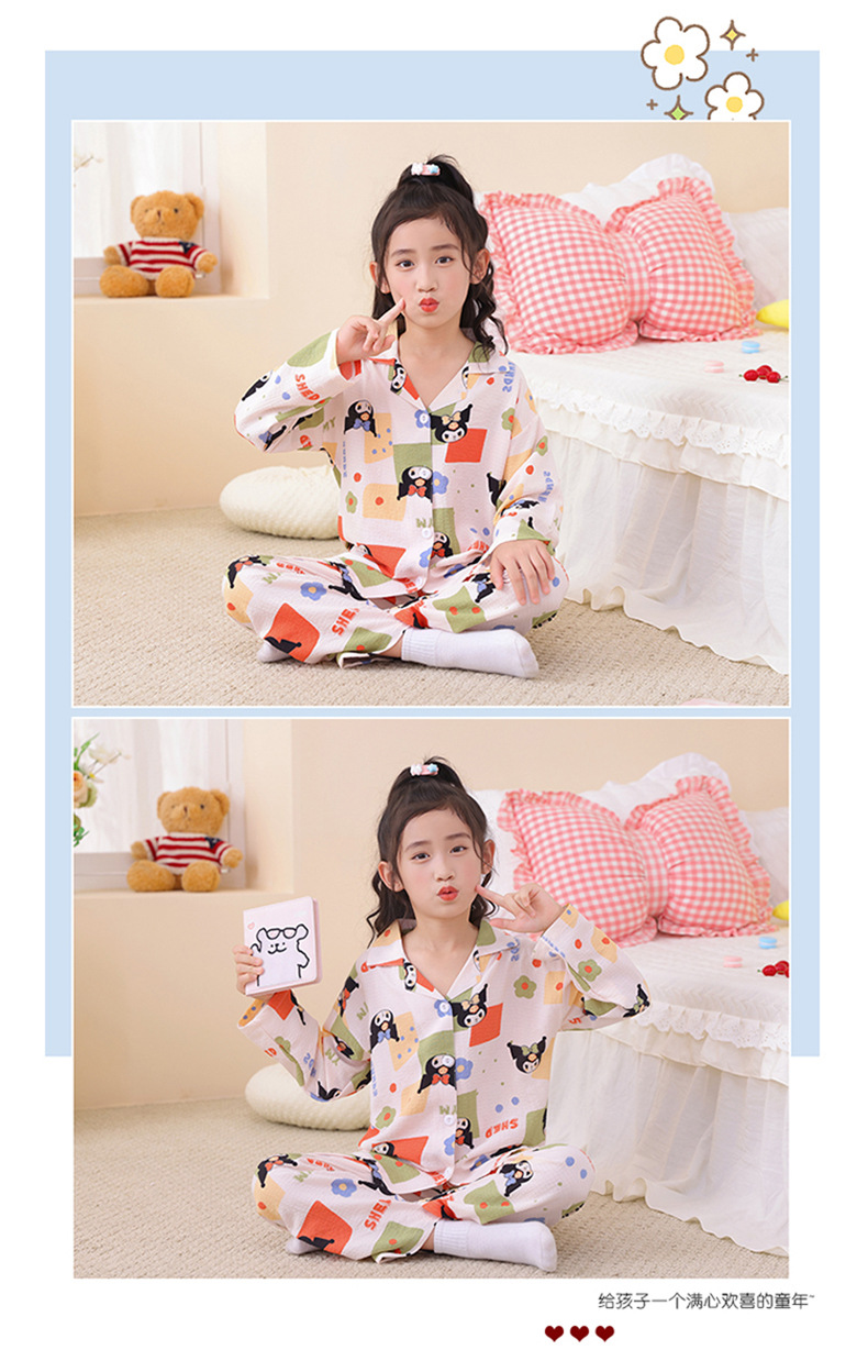 한국 스타일 봄과 여름 새로운 어린이 만화 귀여운 잠옷 봄과 가을 버블 코튼 긴팔 소녀 홈웨어 세트