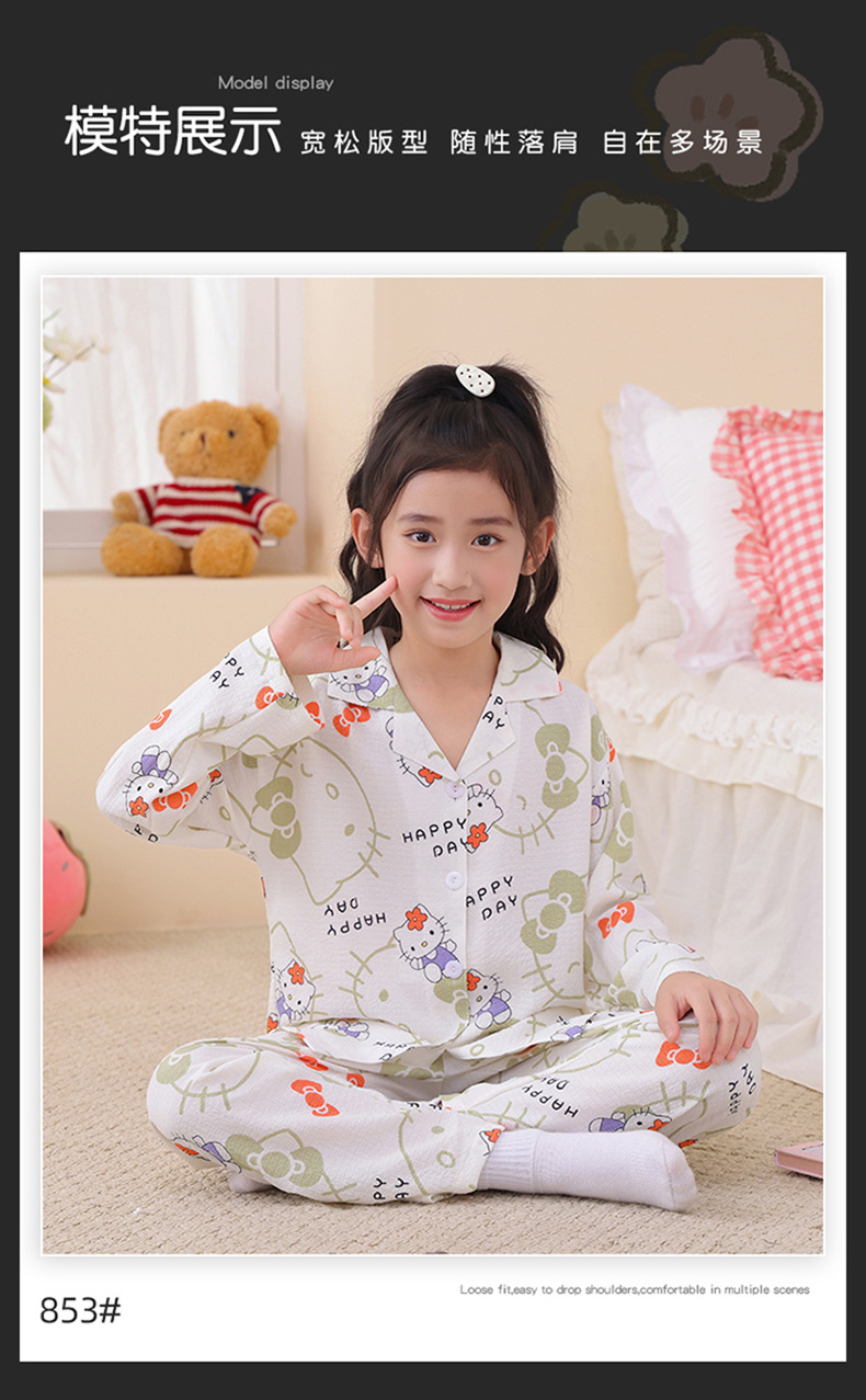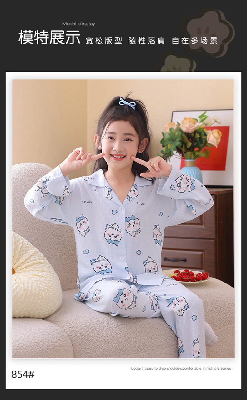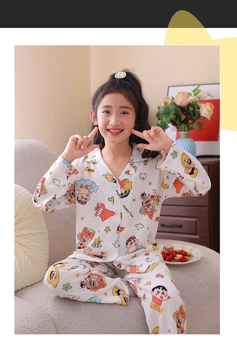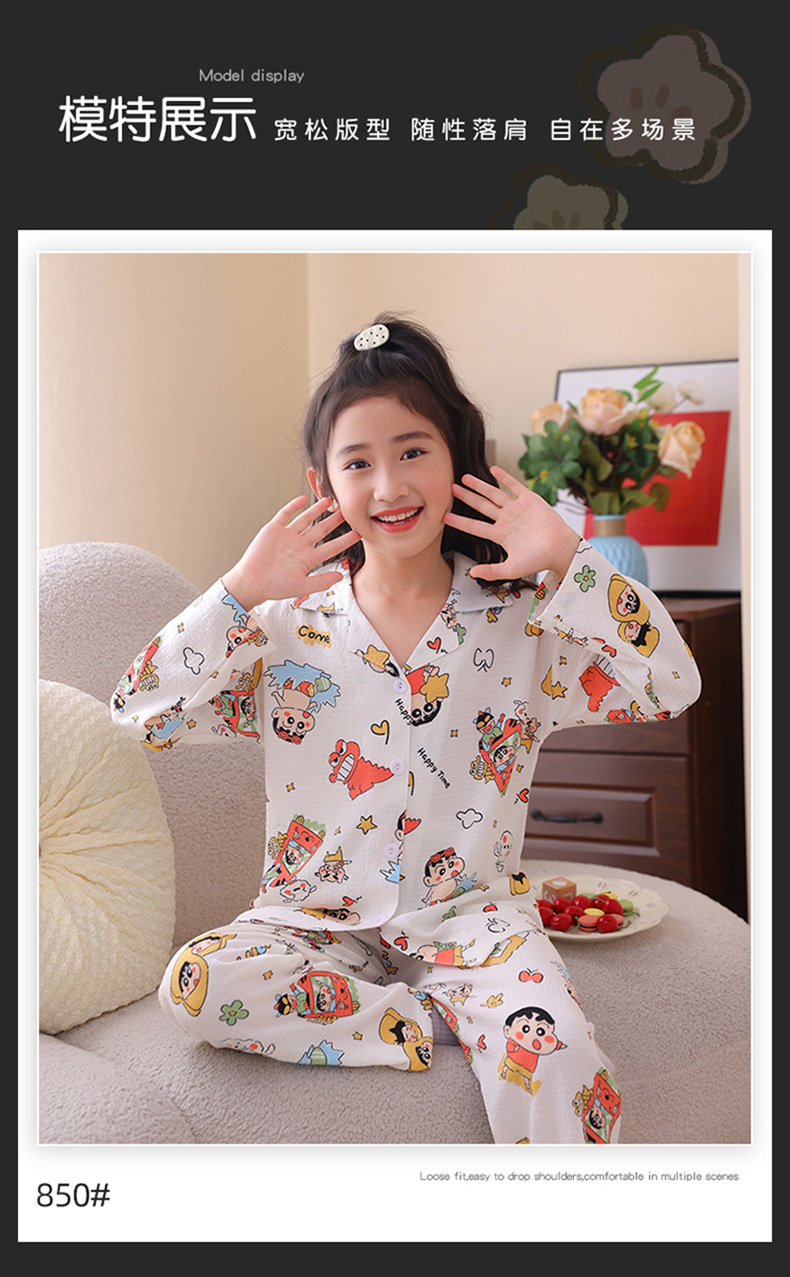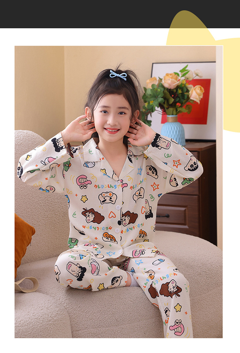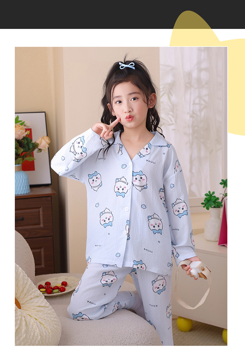한국 스타일 봄과 여름 새로운 어린이 만화 귀여운 잠옷 봄과 가을 버블 코튼 긴팔 소녀 홈웨어 세트